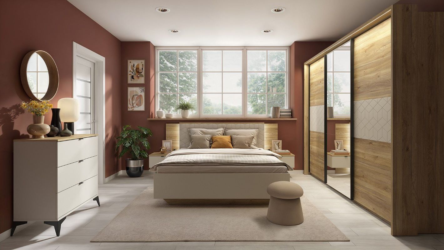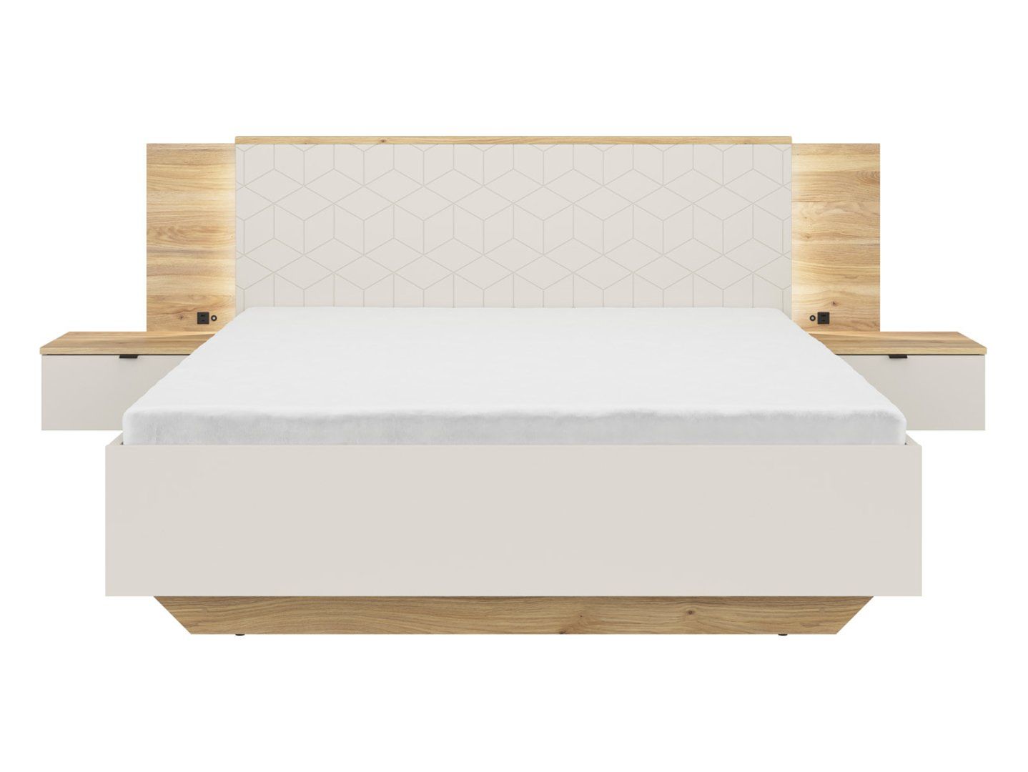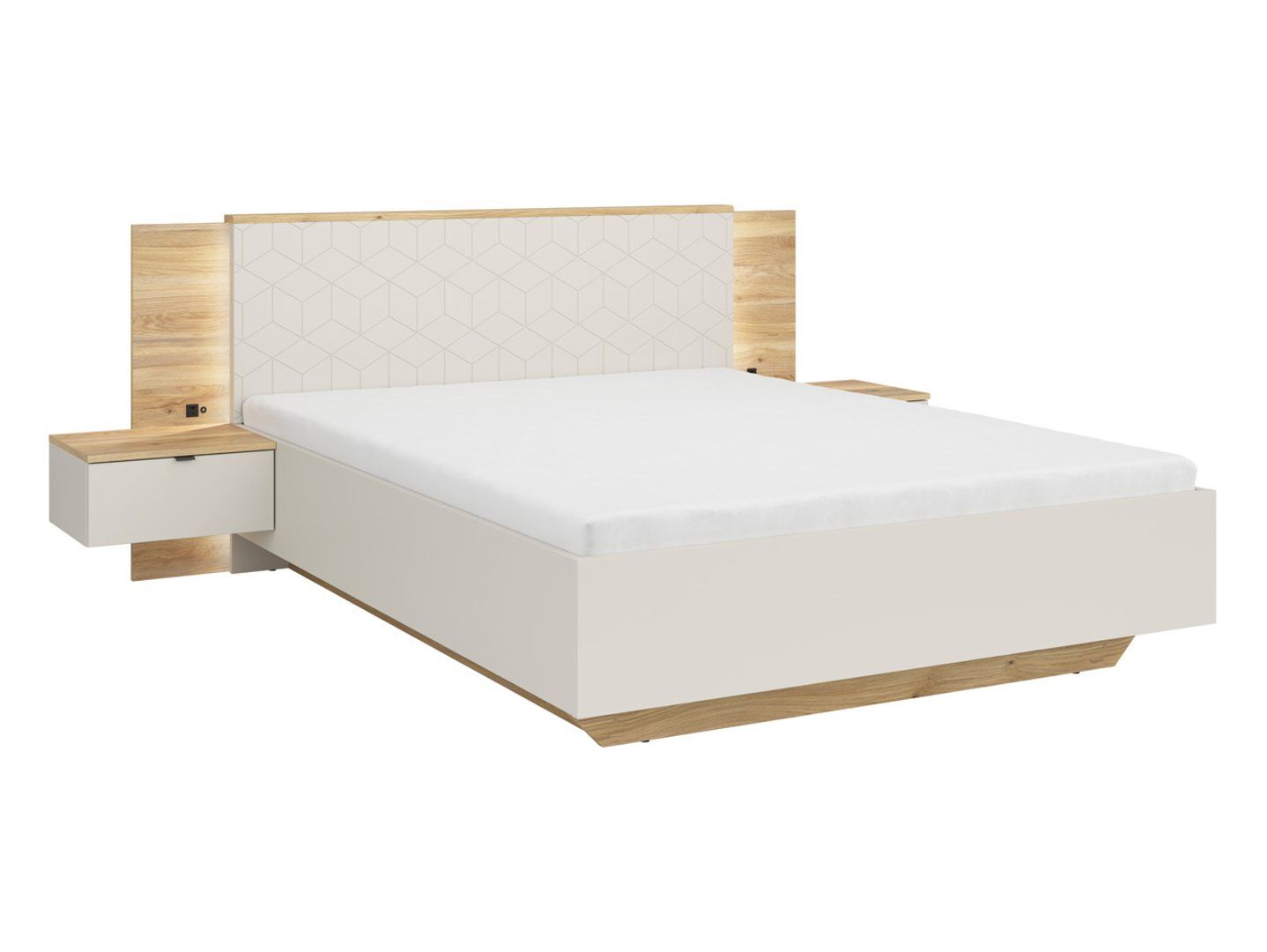 The Glamour Bed – Elegance and Modern Style in the Bedroom. Comfort and Functionality. The Glamour Bed is a perfect choice for those who value comfort and elegant design. Its design, adapted to a 160×200 cm mattress, guarantees stable support and a comfortable night’s sleep. A practical bedding compartment allows you to efficiently utilize space and maintain order in the bedroom, while the built-in frame allows you to choose any mattress to suit your individual needs. Practical Solutions. The spacious bedding compartment provides additional storage for duvets, pillows, and seasonal textiles. This is the perfect solution for a bedroom where functionality and aesthetics are key. Design and Style. The combination of mauvella oak and cashmere gives the Glamour Bed a unique character. The high headboard, adorned with a geometric pattern, emphasizes the furniture’s modern style while creating a cozy atmosphere. It’s the perfect base for both minimalist designs and glamorous interiors, where gold accents and soft textiles will work well. Features: Bed with bedding storage Built-in frame – choice of mattress Sleeping area: 160×200 cm High headboard with a geometric pattern Colors: Mauvella Oak and Cashmere Stable and solid construction Summary: The Glamour bed combines subtle modernity, elegance, and practicality. With its bedding storage, built-in frame, and unique design, it will become the focal point of your bedroom.
