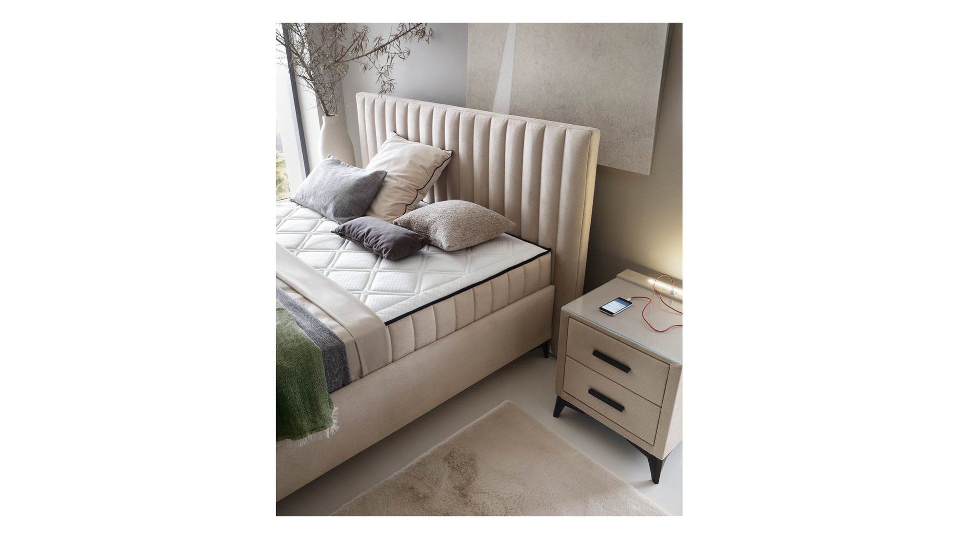 JOY kontinentinė lova 160×200 su dviem konteineriais, smėlio spalvos