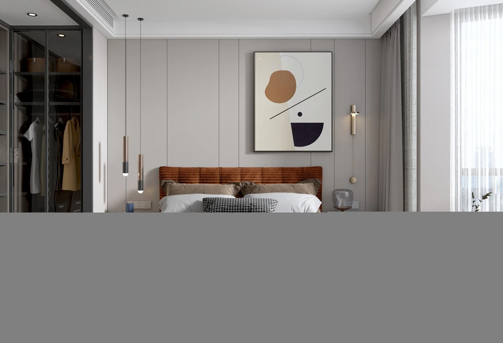 A modern double bed with a sleeping area of 180 x 200 cm. The upholstered shape with a distinctive, high headboard complements the modern style while offering a comfortable place for rest and everyday use.