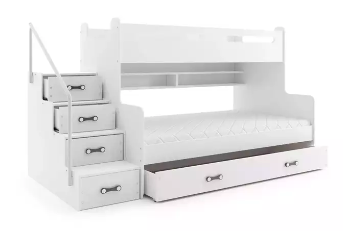 MAX 3 jaunimo dviaukštė lova 120×200 su čiužiniu ir stalčiumi, balta