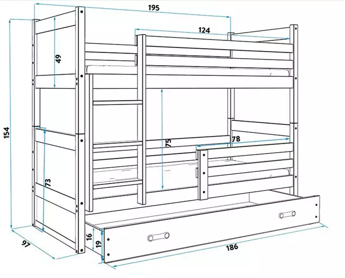 Be the first to review “RICO jaunimo dviaukštė lova 90×190 su čiužiniu ir stalčiumi, grafito/mėlyna”