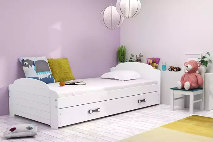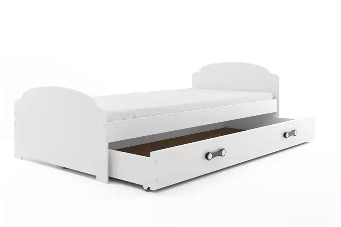 LILI viengulė jaunimo lova 90×200 su stalčiumi, balta