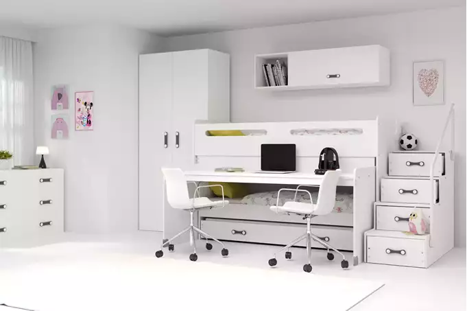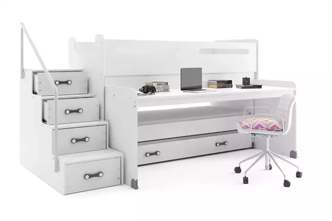 MAX 1 80X200 trijų asmenų jaunimo lova su čiužiniu ir stalu, balta