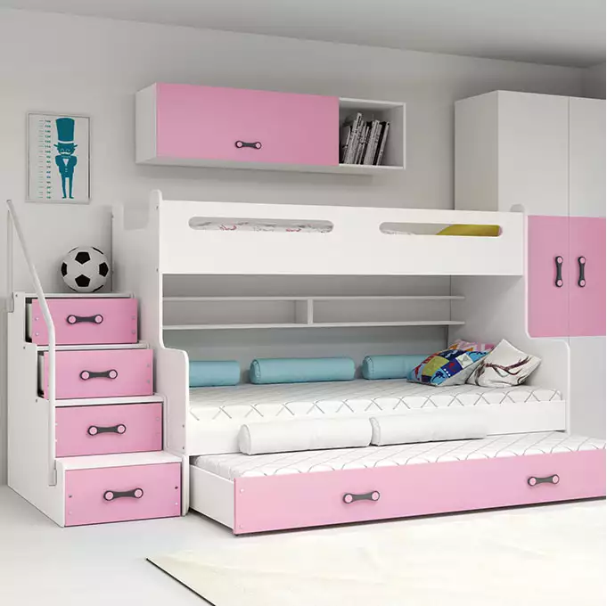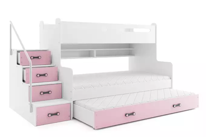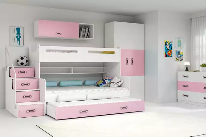 MAX 3 120X200 trijų asmenų jaunimo lova su čiužiniu ir stalčiumi, rožinė