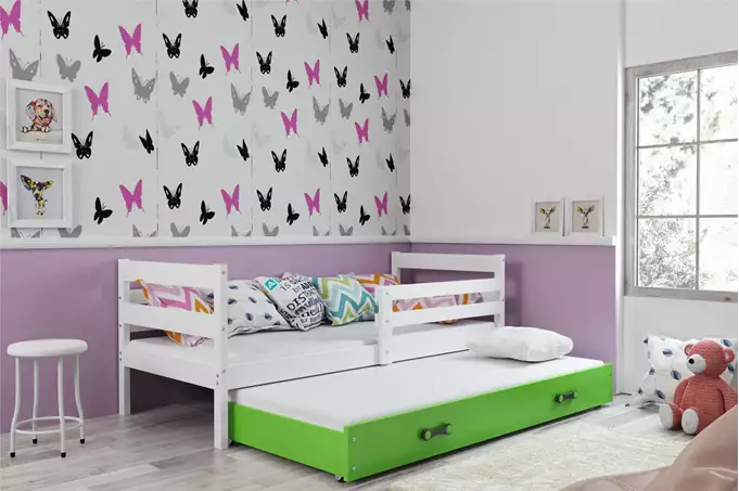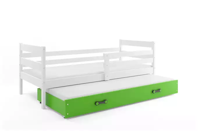 ERYK 90×200 jaunimo išskleidžiama lova su čiužiniu ir stalčiumi, balta/žalia