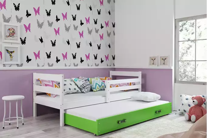 ERYK 90×200 jaunimo išskleidžiama lova su stalčiumi, balta/žalia