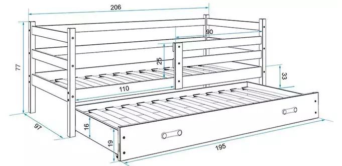 Be the first to review “ERYK 90×200 jaunimo išskleidžiama lova su stalčiumi, pušis/balta”