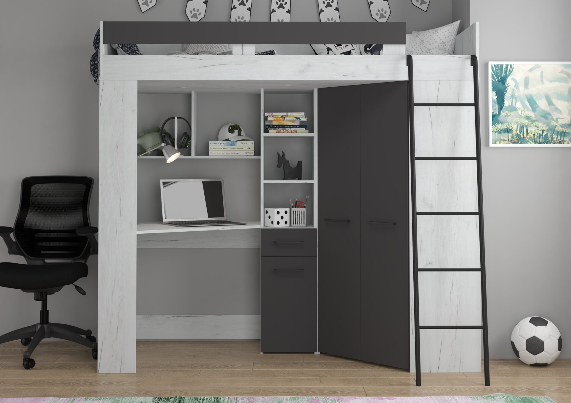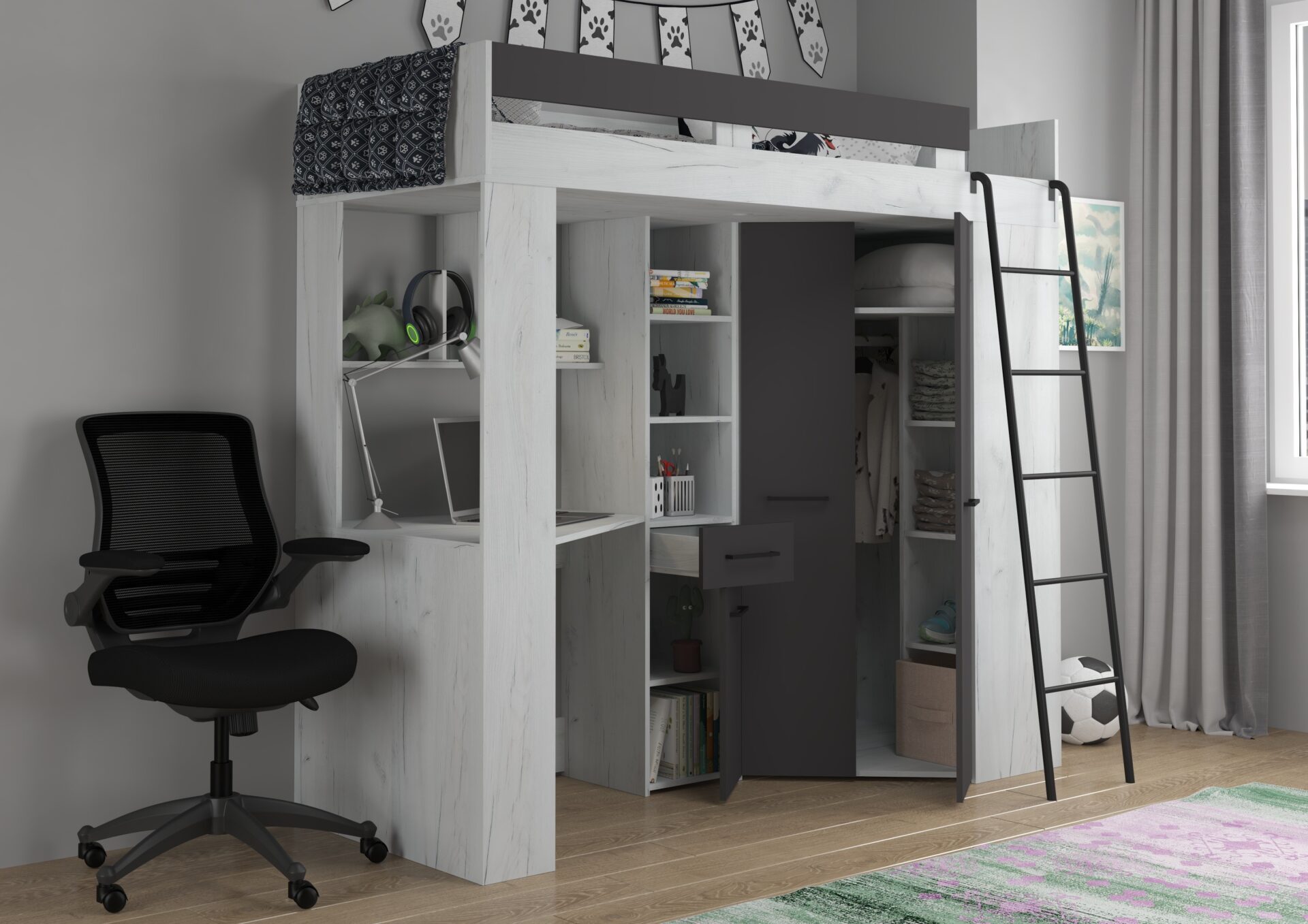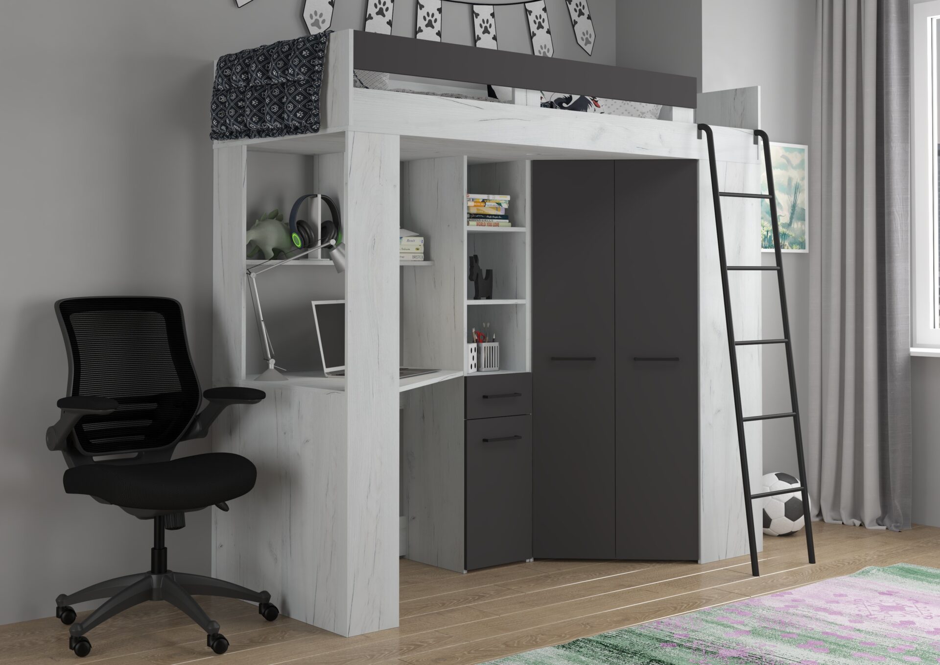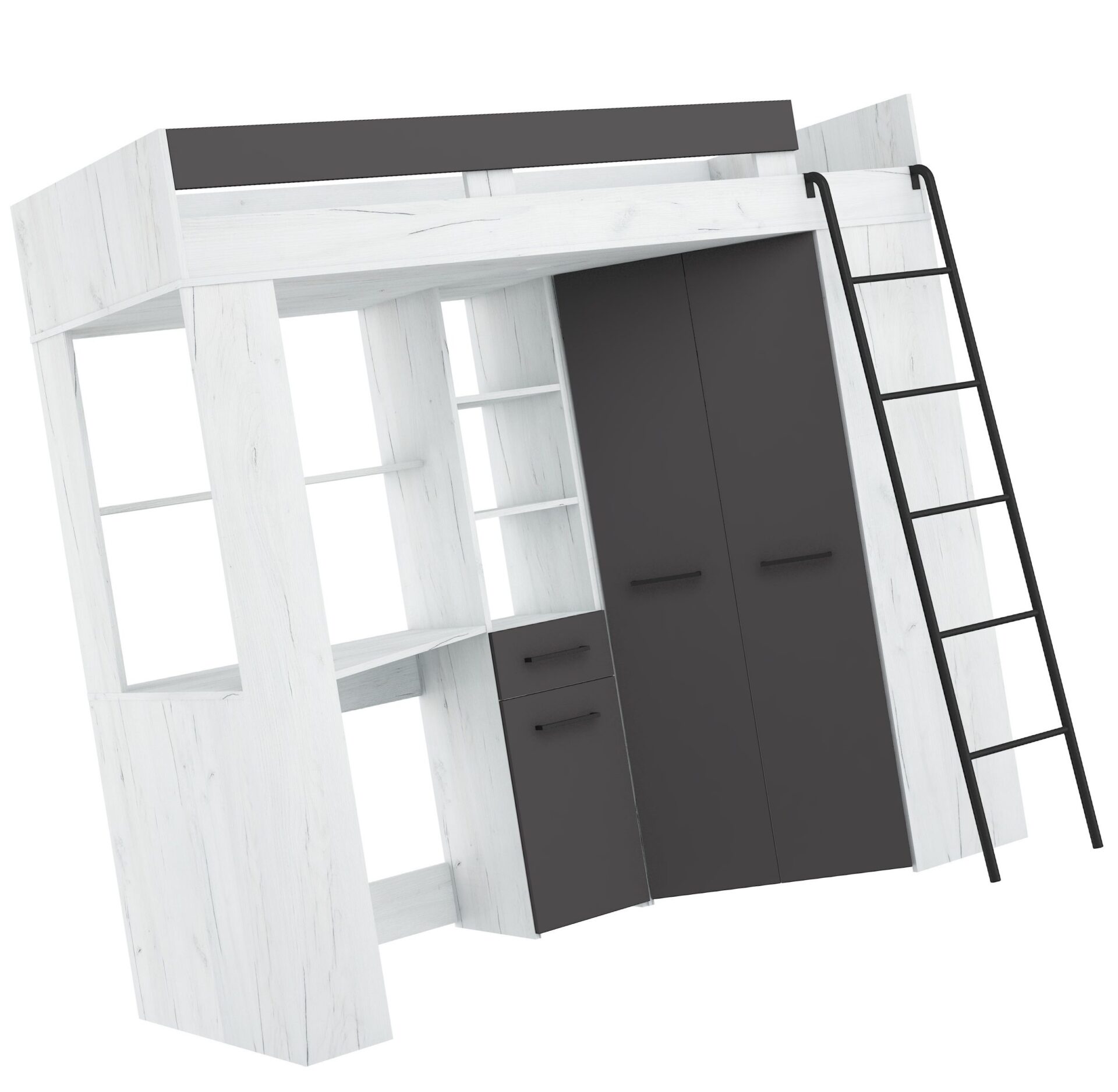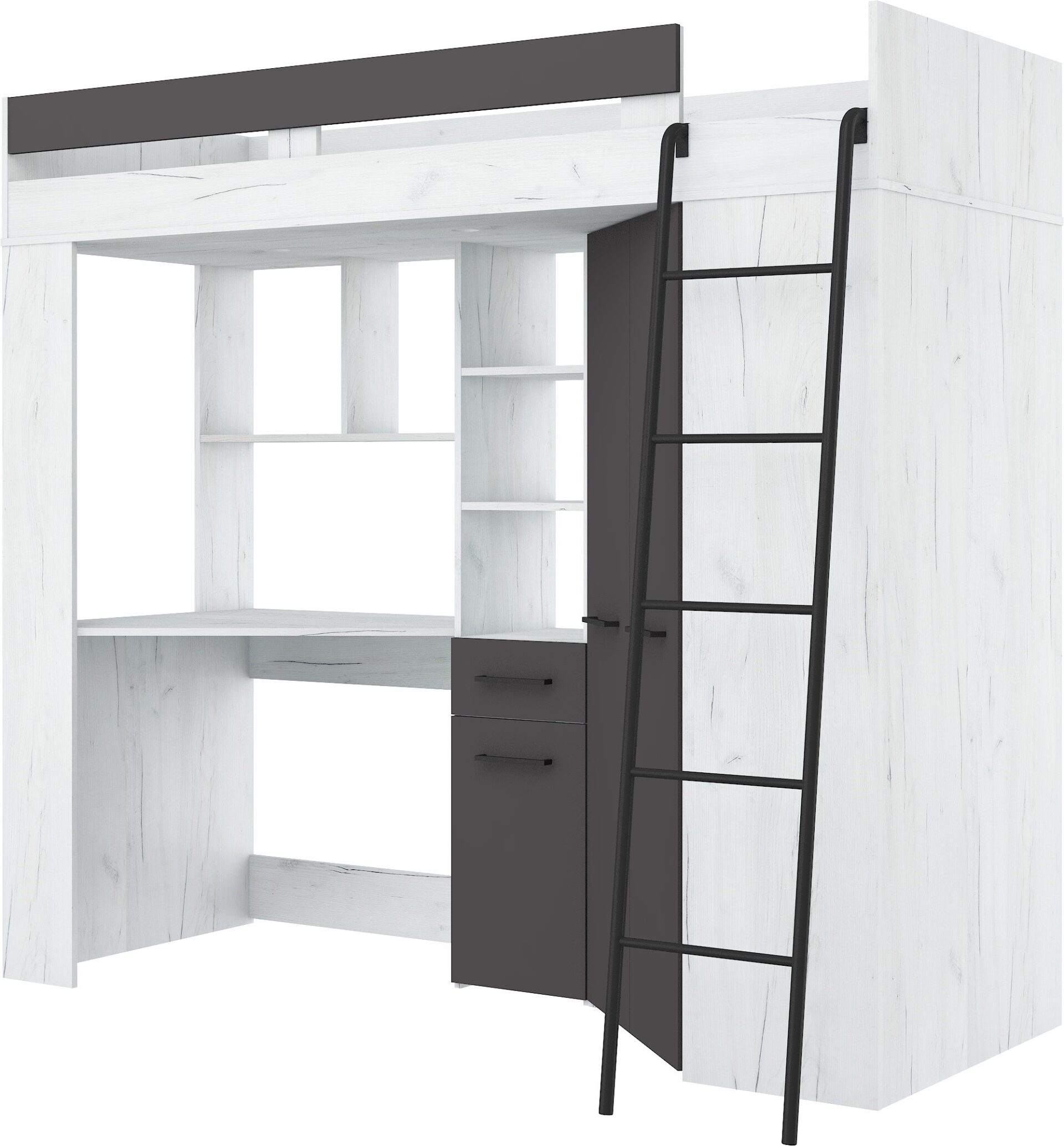 FLO P mezzanine without mattress 80×200, 16 mm board, ABS edge, SILENT CLOSING opening, max mattress height 12 cm, Color: white craft oak / graphite