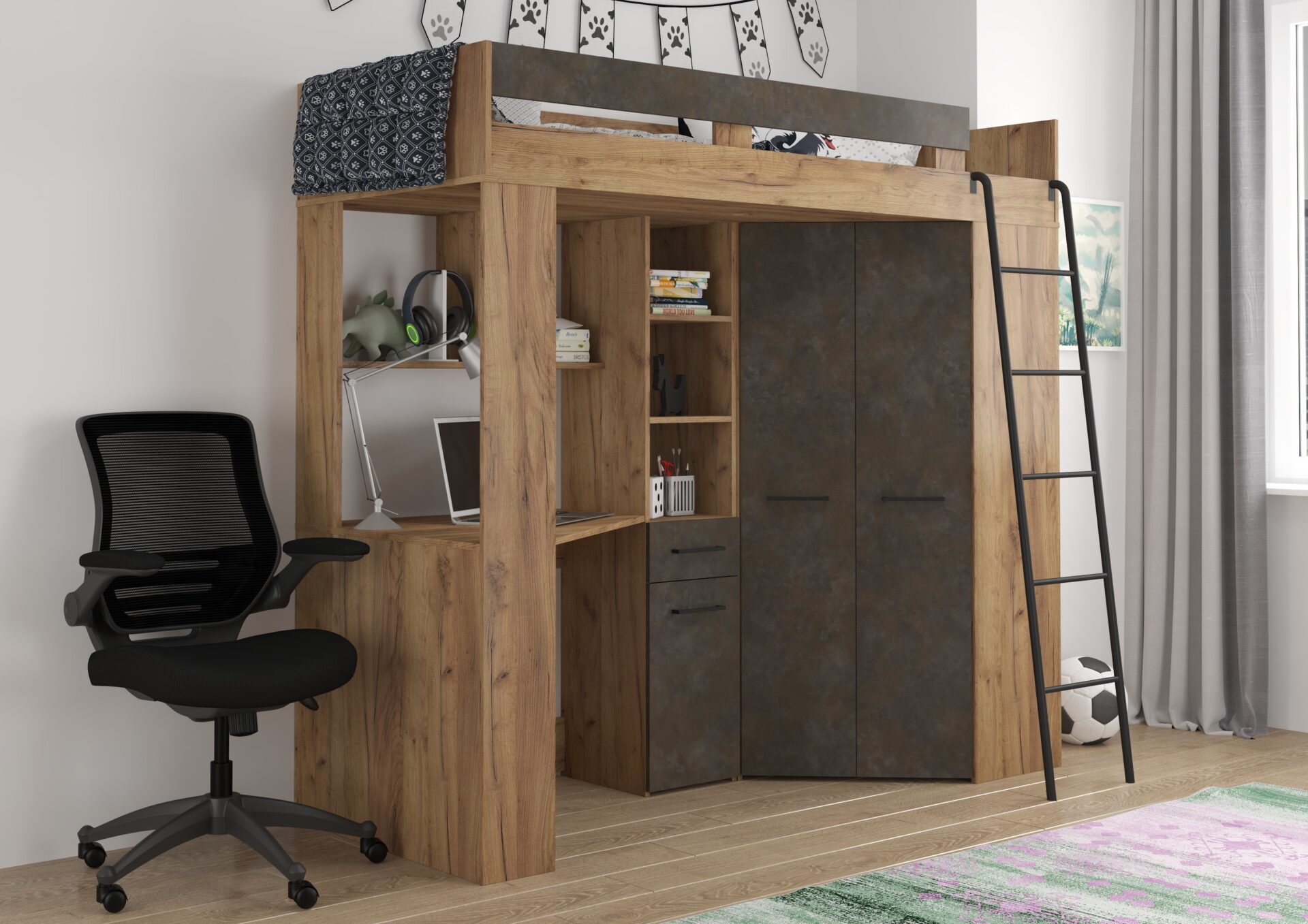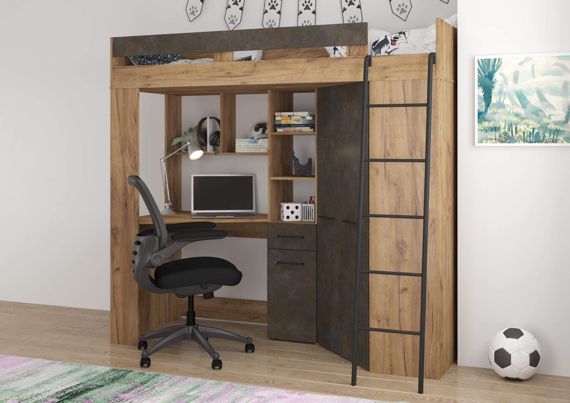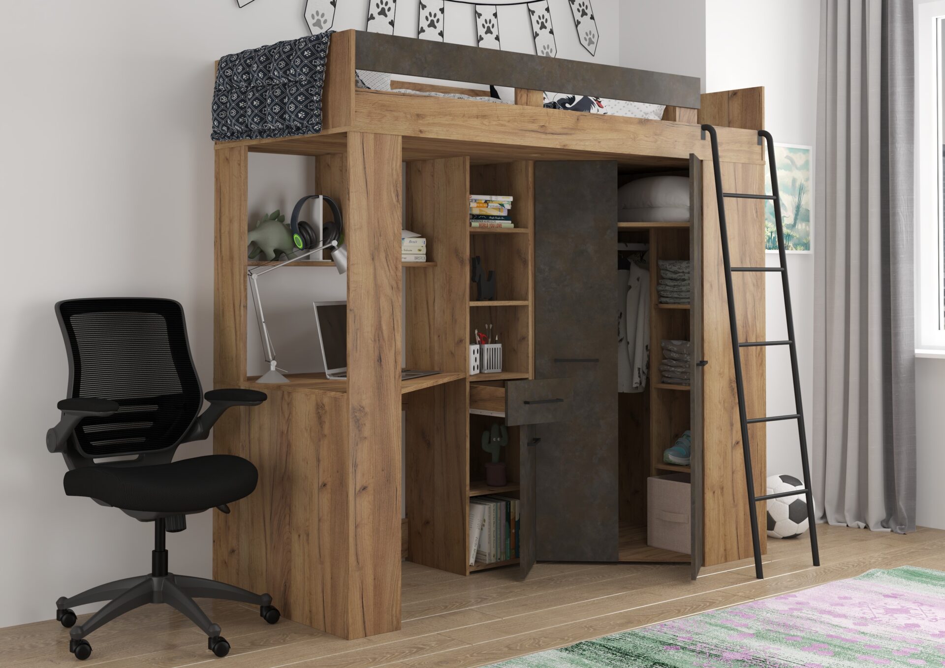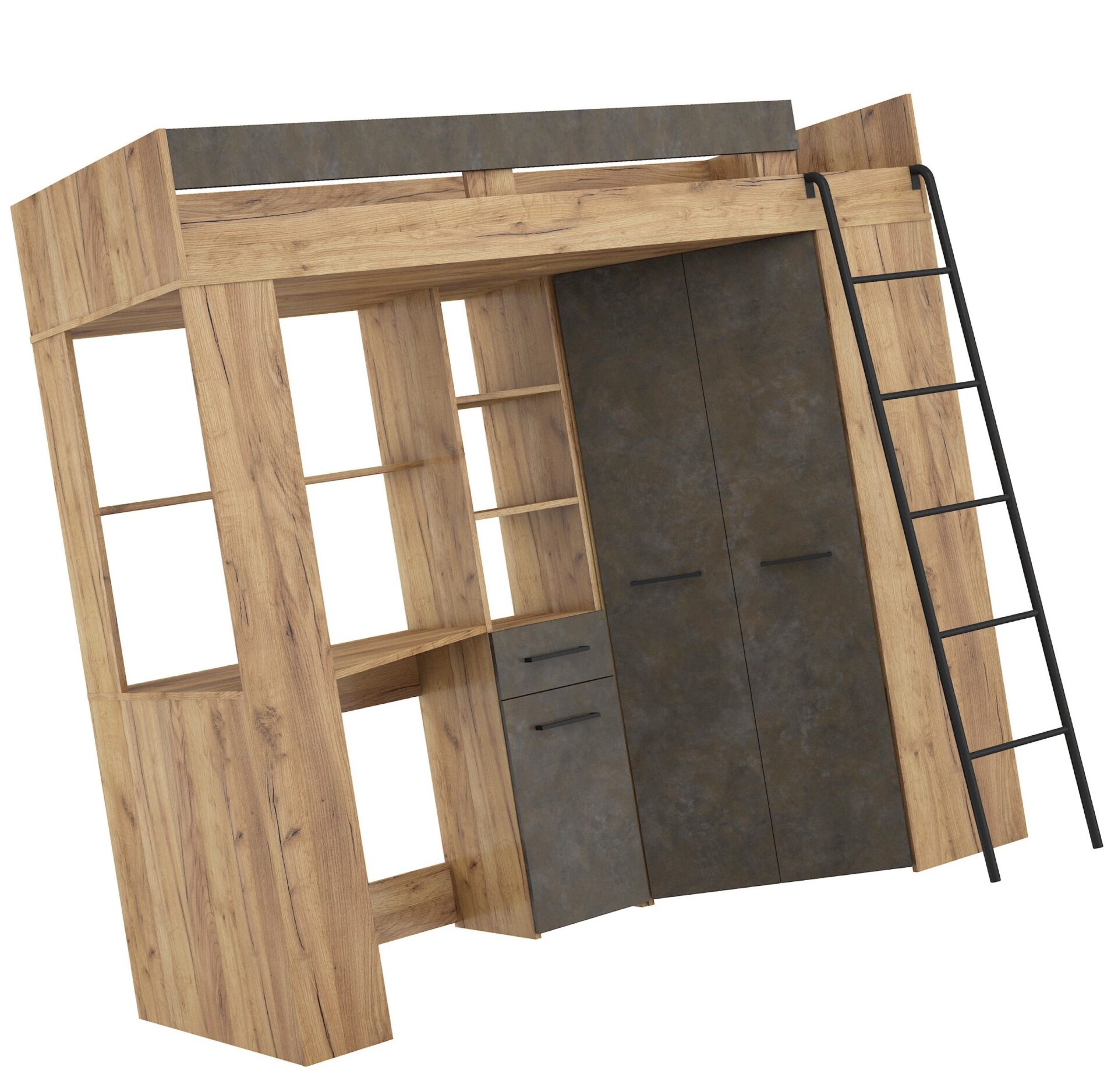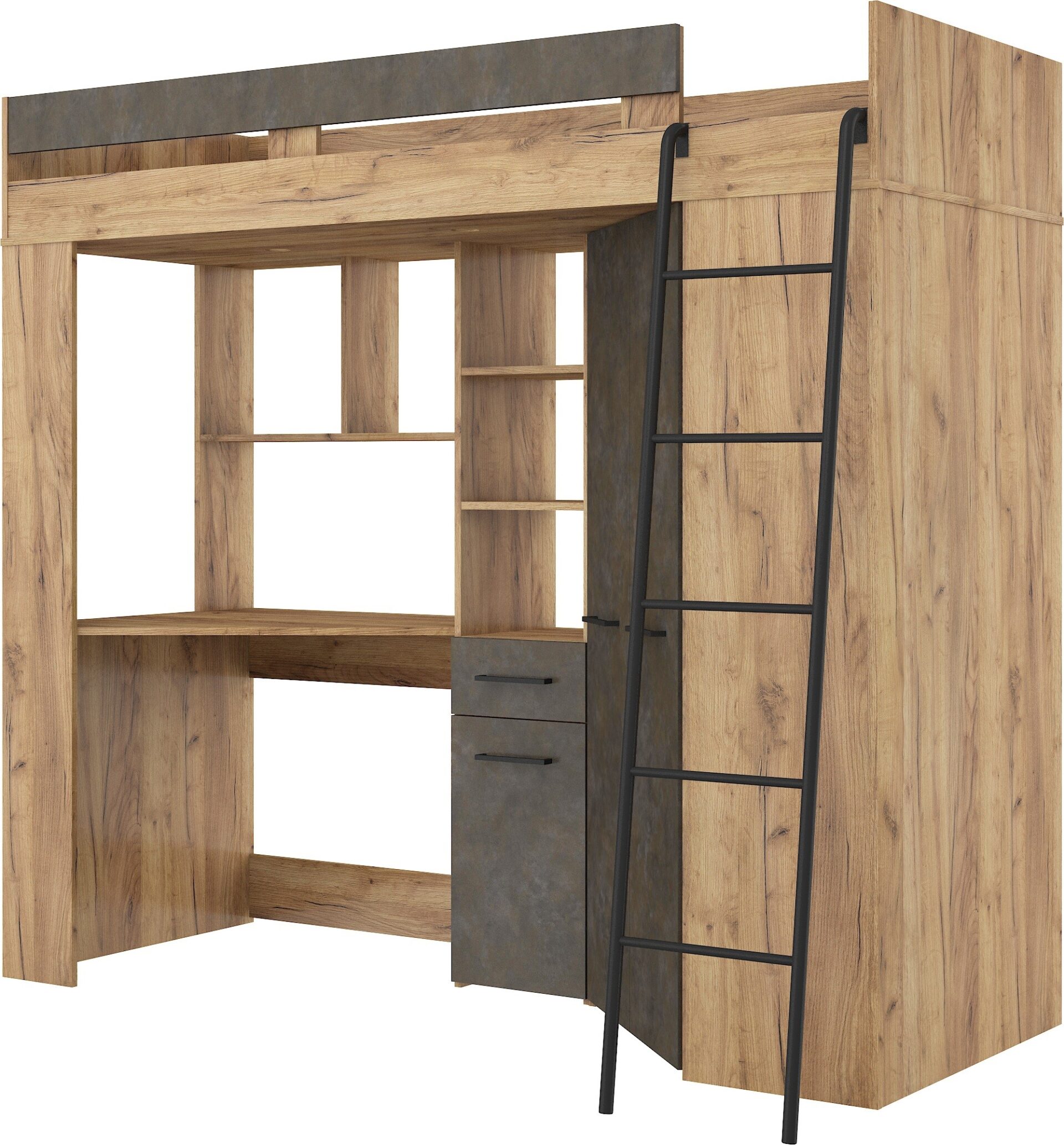 FLO P mezzanine without mattress 80×200, 16 mm board, ABS edge, SILENT CLOSING opening, max mattress height 12 cm, Color: gold craft oak / granada brown