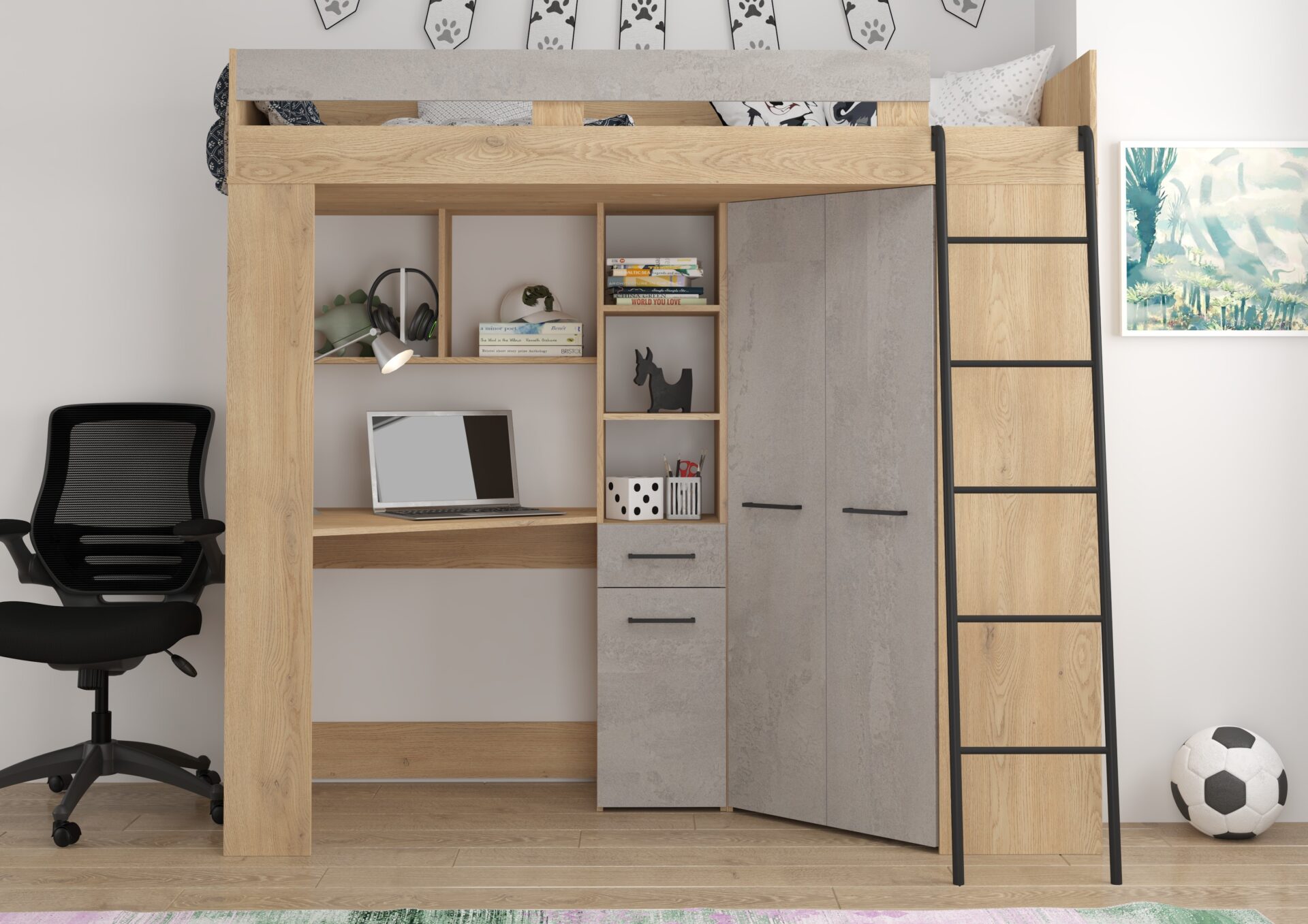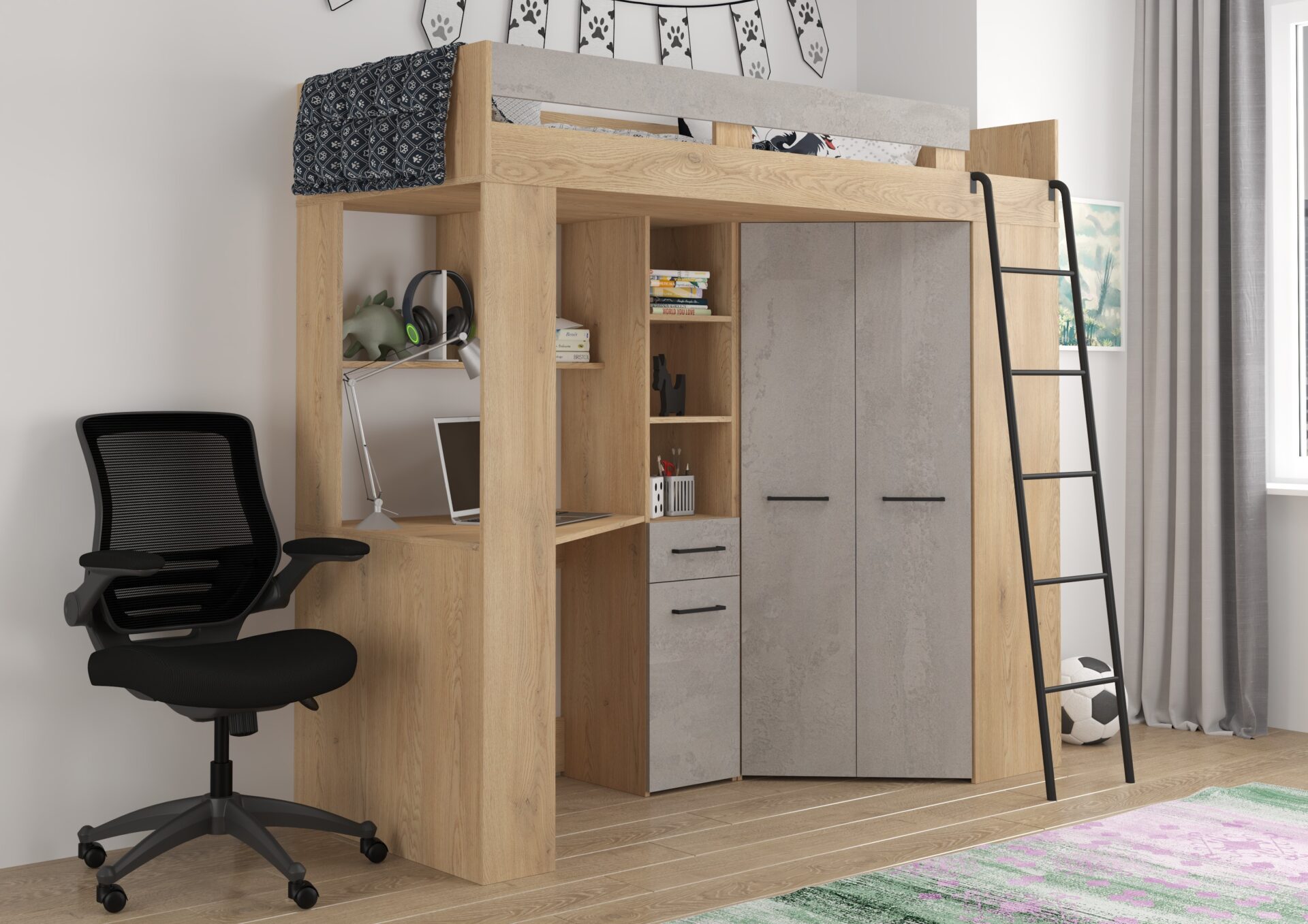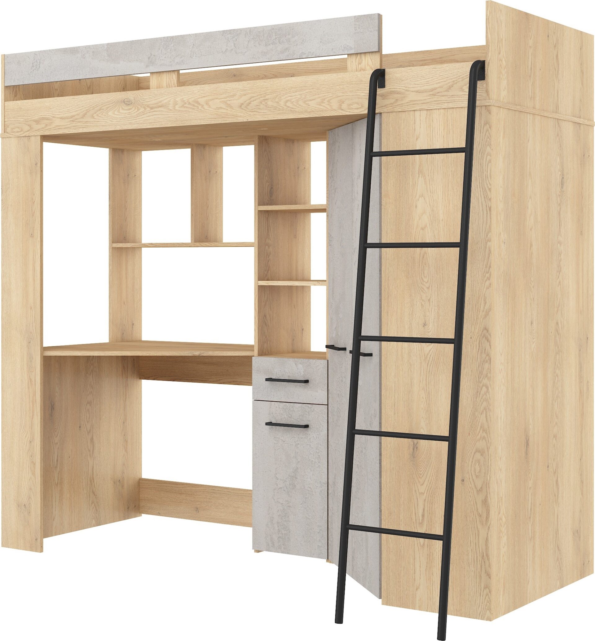 FLO P mezzanine without mattress 80×200, 16 mm board, ABS edge, SILENT CLOSING opening, max mattress height 12 cm, Color: cremona oak / concrete gray