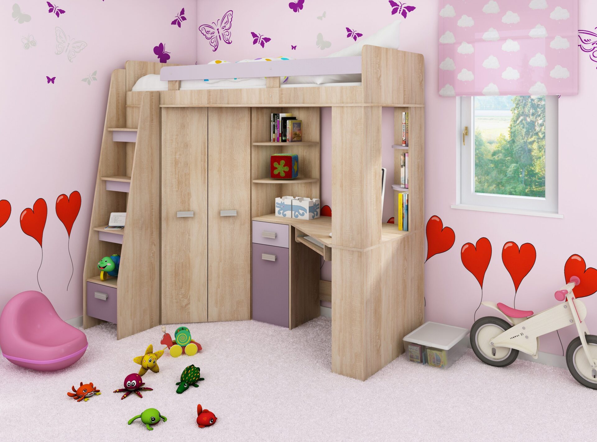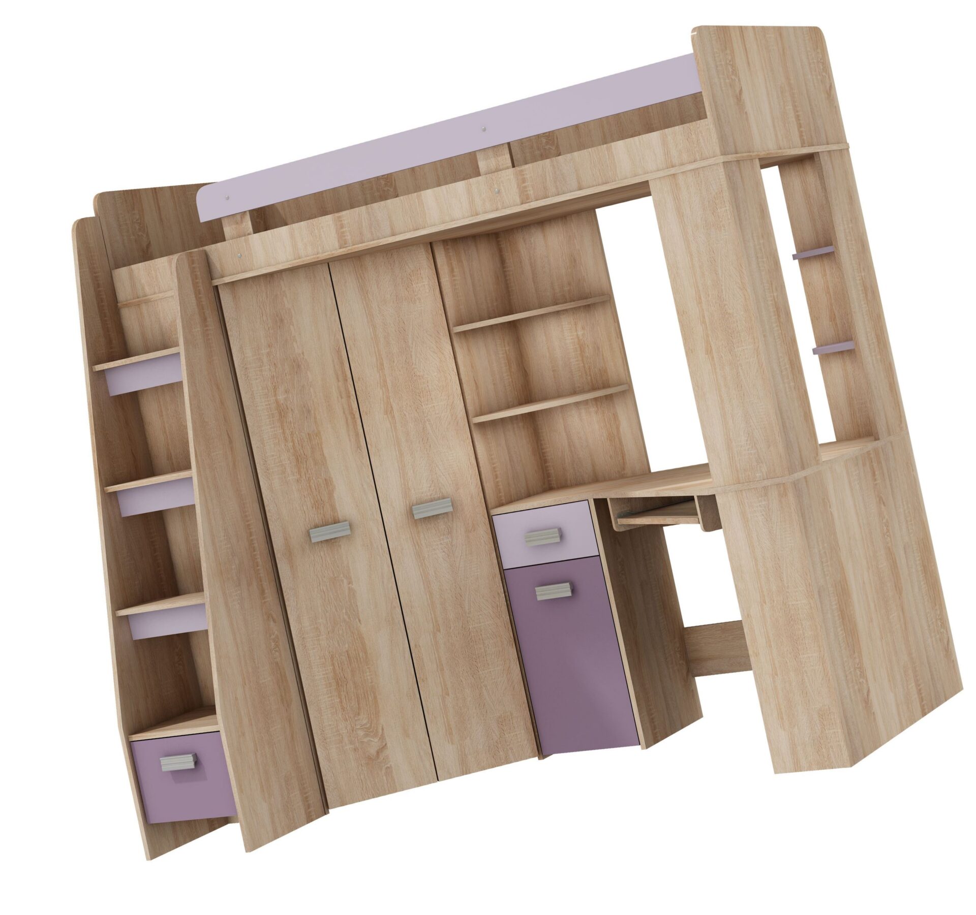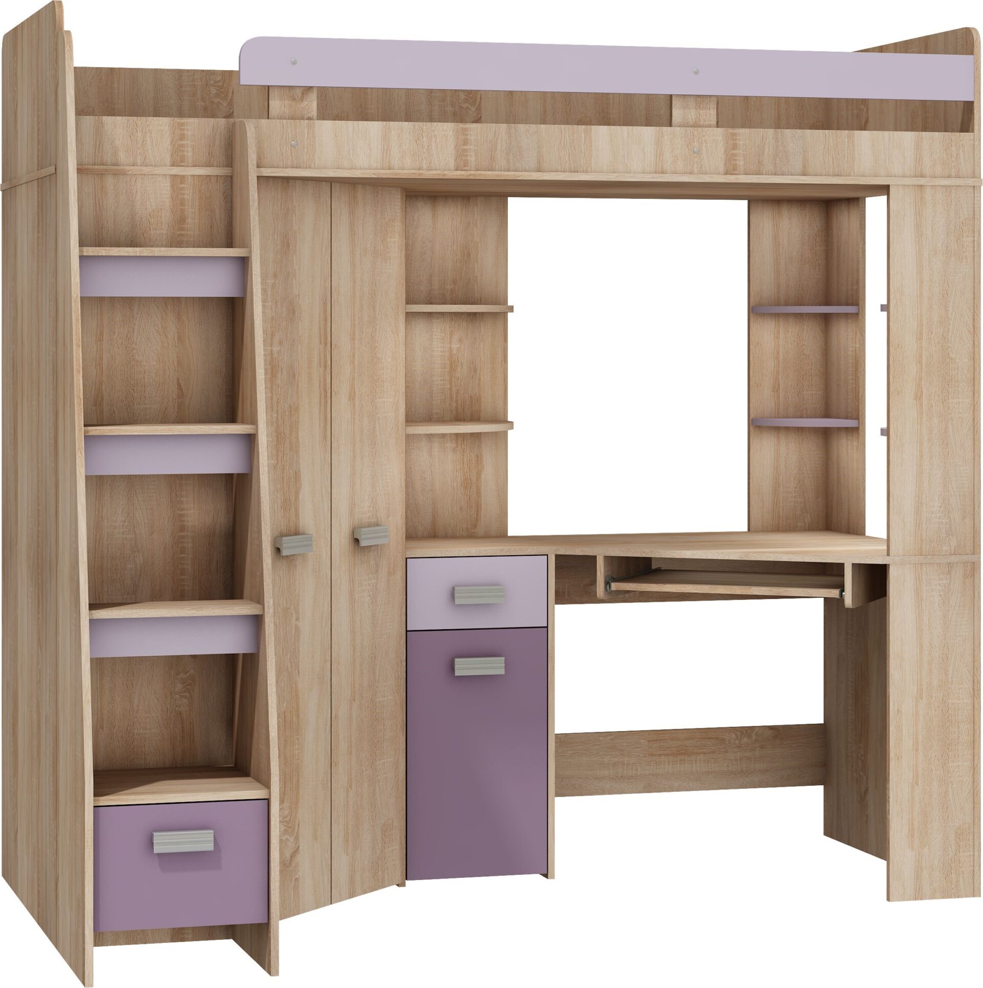 SOLA L mezzanine without mattress 80×200, 16 mm board, ABS edge, max mattress height 10 cm, Color: Sonoma oak / lavender / purple