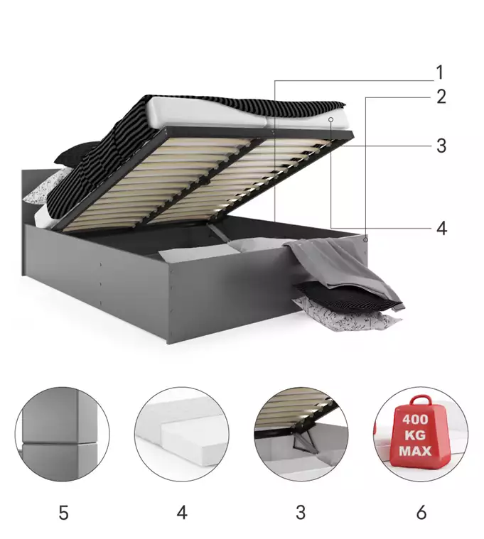 PANAMAX 140X200 miegamojo lova su daiktadėže, grafito spalvos