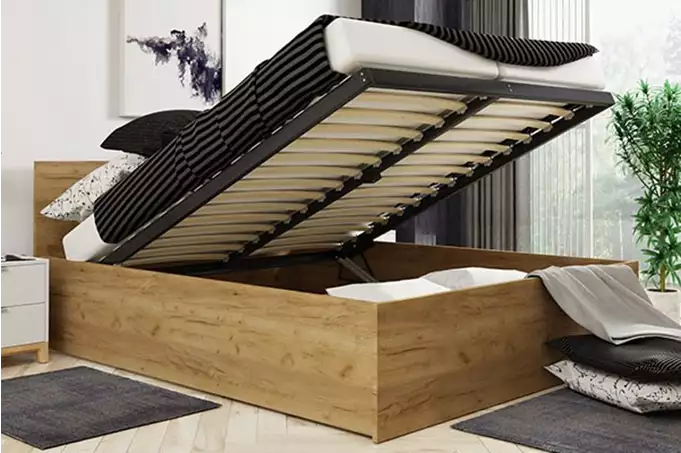 PANAMAX 160X200 miegamojo lova su čiužiniu ir daiktadėže, ruda