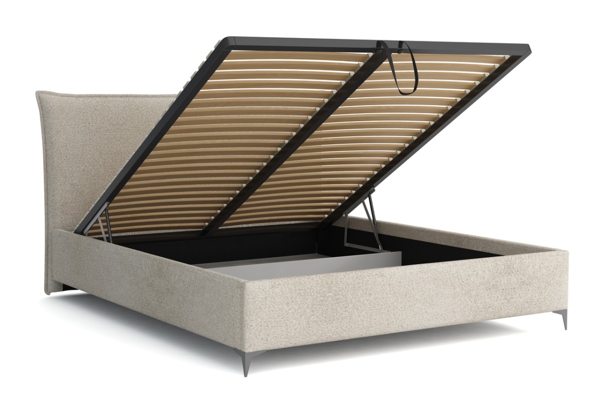 The exclusive Revis upholstered bed is a piece of furniture whose luxurious appearance will add a unique charm to any bedroom, and thanks to its storage compartment, it will keep the room neat and tidy.