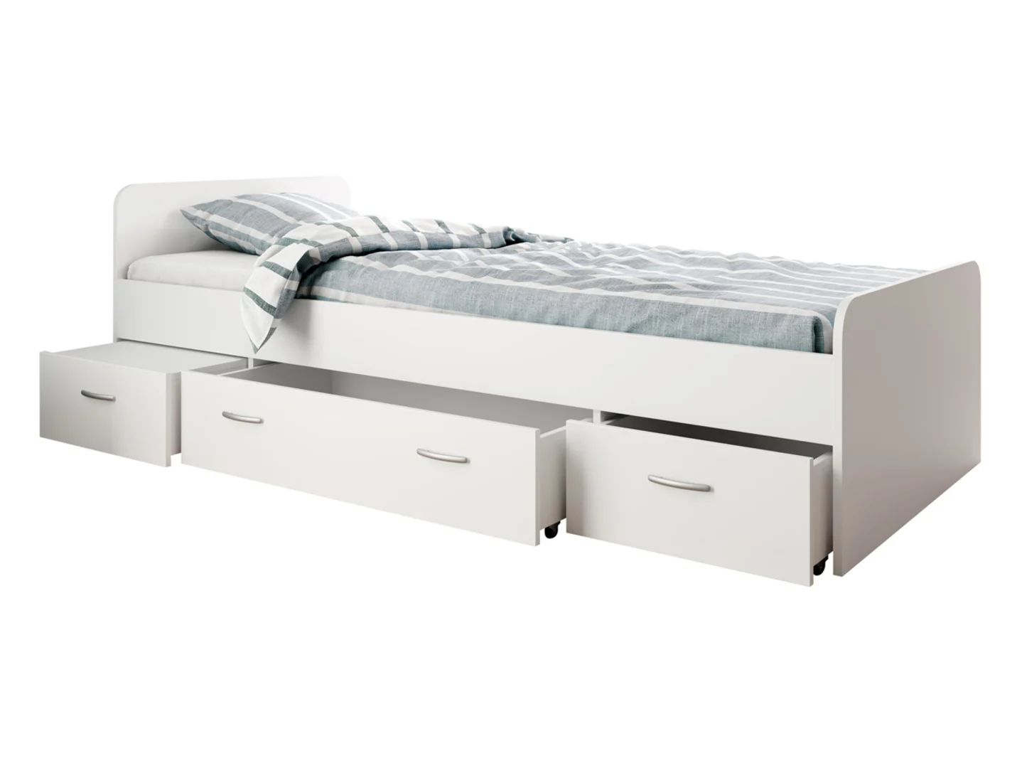 Product code POL/BORO-LOZ3S/90A-BI Length 204 cm Width 95 cm Height 65 cm Collection Boro Color white Shade white Style modern Material laminate Sleeping function with sleeping function Sleeping area 90×200 Container with container Number of drawers 3-drawers Manufacturer Black Red White Furniture type Beds VAT tax 23% EAN 5906123037273