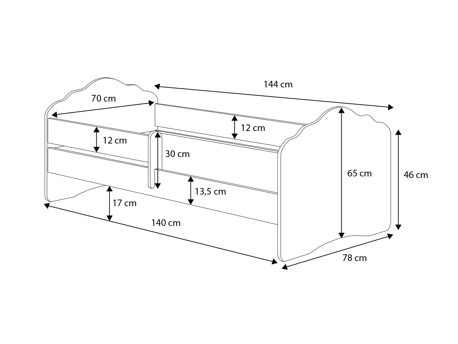 This single bed from the CASIMO collection, with its simple, matte white design, will blend seamlessly into any child’s room. With a wide selection of graphics, you’ll easily find the model that best suits your child’s passions. Eco-friendly, water-based paints are used in the production process, making them safe and resistant to mechanical damage. Furthermore, the bed has no sharp corners, and the graphics are protected by laminate. An additional advantage is the zippered mattress cover, which is easy to remove and wash. The bed can be supplemented with a practical bedding drawer or a safety rail for added safety during sleep. Furthermore, if you need additional sleeping space, we encourage you to explore the CASIMO II model, which features a drawer with a sleeping function.