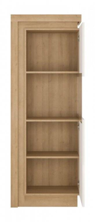Discover the full elegance and functionality of the Lyon LYOV01P single-door display cabinet, whose unique design combines the subtlety of Riviera Light Oak with the timeless purity of white. This partially glazed display cabinet gem, thanks to its dimensions (width: 59.7 cm, height: 164.1 cm, depth: 42 cm), will fit perfectly into both spacious and intimate spaces, creating a unique atmosphere. Distinguished by its modern design, the Lyon LYOV01P display cabinet, with its body and front made of durable laminated chipboard, meets the needs of even the most demanding users. This material is resistant to scratches, damage, moisture, and high temperatures, ensuring long-term use without worrying about its condition. One of its key features is the handleless system, which facilitates opening the doors without the need for traditional handles, emphasizing the display cabinet’s minimalistic and modern character. To ensure even greater comfort of use, soft-close hinges are used, allowing the door to close silently and gently.