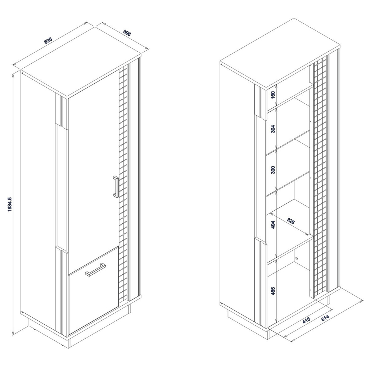 Width 63.5 cm Depth 39.5 cm Height 192 cm Product weight with packaging 56.15 kg Manufacturer’s code / symbol MR06 Collection name MARCO Name in the b2b system MARCO MR-6 white-black/white-gloss DISPLAY CABINET L set Number of product packages 3 Style Modern Equipment Assembly instructions / assembly accessories Assembly For self-assembly Body color White / Black Body material / type / thickness 16 mm furniture board / Strip 16 mm MDF furniture board Top body material / type / thickness 22 mm furniture board Bottom body material / type / thickness 22 mm furniture board Base body material / type / thickness 16 mm furniture board Back wall material / type / thickness 2.5 mm HDF furniture board Back wall visible part color Black Front color White Gloss Front material / type / thickness 18 mm MDF furniture board Front hinge ⌀ 35 mm adjustable in three planes Front handle / material / color Plastic / black Glazed front material / glass color Tempered / Antisol graphite Glazed front glass thickness 4 mm Glass shelf glass color Colorless Glass shelf glass thickness 6 mm Glass shelf quantity 2 External lighting As standard External lighting light color Cold white External lighting energy class A++ Soft-close door system As standard Foot / finish / color Non-adjustable / Furniture glide / plastic / Black Number of doors 2 Number of recesses closed behind the front glass 3 Number of recesses closed 2