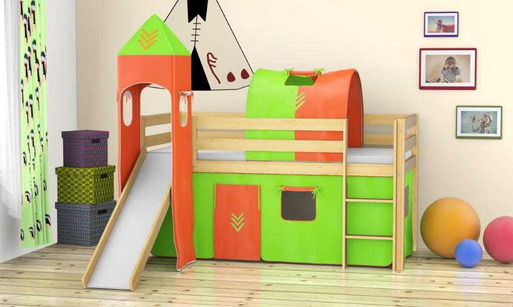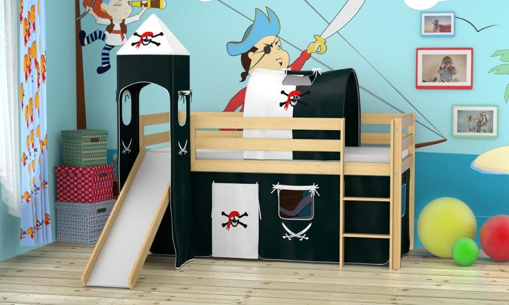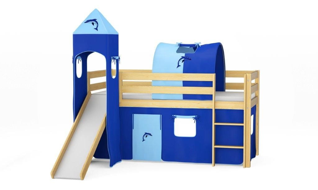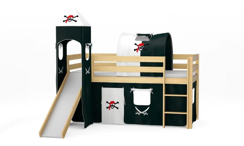 This bed is made of pine wood and features a sturdy construction. The ladder and slide can be mounted on either the right or left side of the bed. The bed’s durable and unique design ensures comfort and ease of use. Technical specifications: