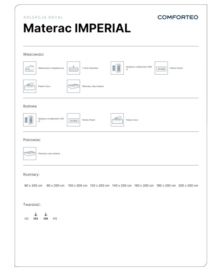 The Imperial 80×200 cm mattress is the quintessence of luxury and attention to detail – even the single version impresses with its advanced design and exclusive finish. The name “Imperial” is not accidental – this model offers royal comfort for sleep and regeneration for both body and mind.