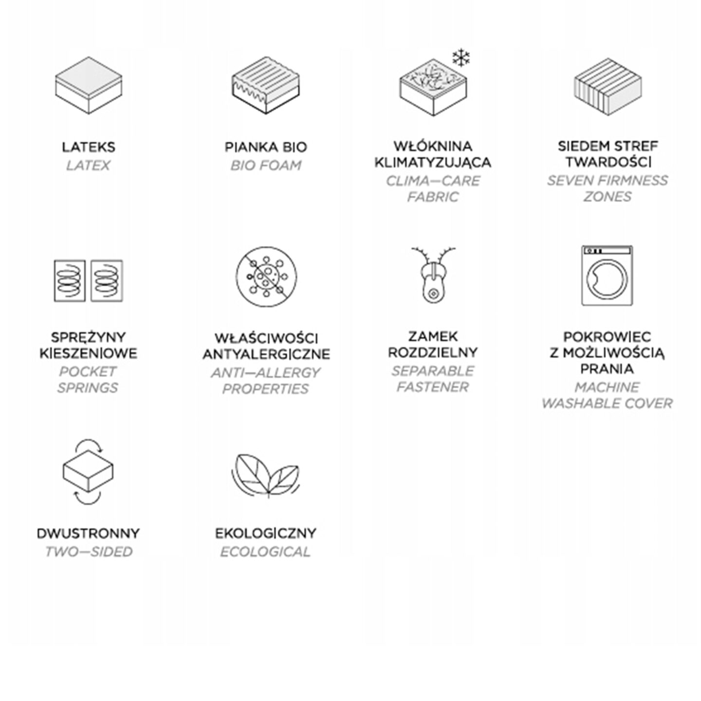 The Live Buriano mattress is a modern pocket spring mattress designed for those who value healthy, hygienic, and comfortable sleep. Its base is made of durable pocket springs that ensure optimal air circulation and protect the interior from moisture, mold, and dust mites. The structure is complemented by organic foam and a layer of latex, allowing the mattress to precisely conform to the natural curves of the body and guarantee stable spine support. It’s the perfect choice for those seeking premium comfort combined with durability and natural materials.