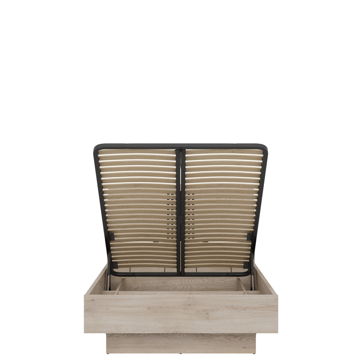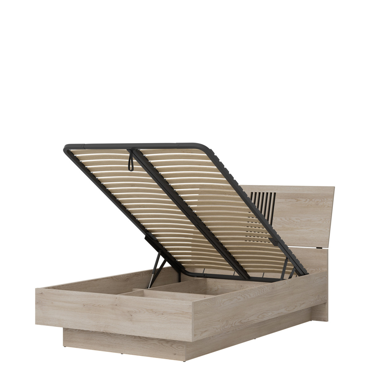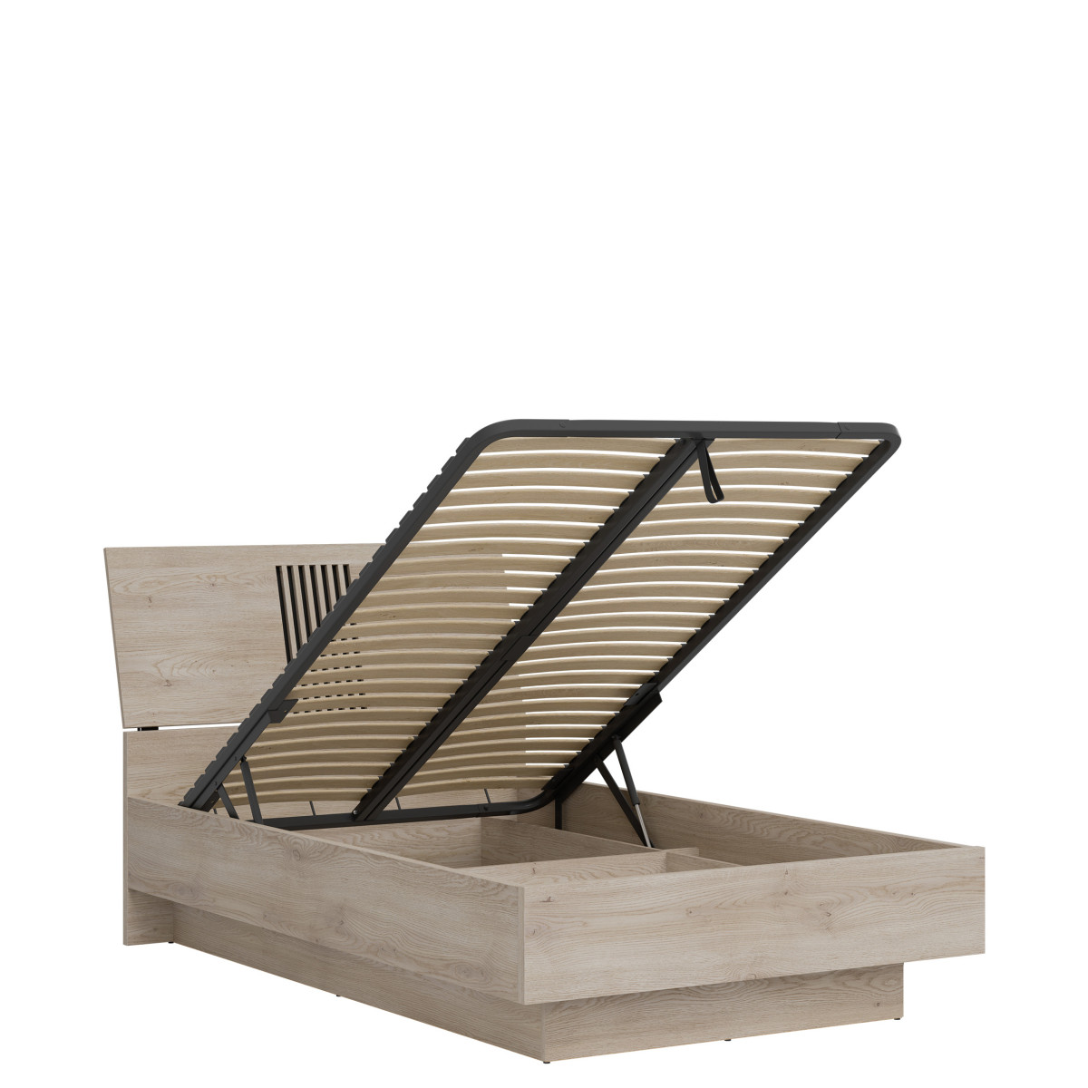 Width 127 cm Length 218 cm Height 108 cm Sleeping area 120 cm x 200 cm Product weight with packaging 104.65 kg Manufacturer’s code / symbol MI18/120S.P. Collection name MATI Name in the b2b system MATI MI18/120 OAK CREM COTTA/CZ BED 120 with SiP KPL Number of product packages 6 Style Modern Equipment Assembly instructions / assembly accessories Assembly For self-assembly Colors Cremona cotta oak / Black Top material / type / thickness 16 mm furniture board / 28 mm furniture board / slats 16 mm MDF furniture board Left and right sides material / type / thickness 28 mm furniture board Bottom material / type / thickness 28 mm furniture board Base material / type / thickness 16 mm furniture board Foot / material / color Non-adjustable / Furniture glider / plastic / Black Frame Standard Frame material Metal frame / wooden slats Frame number of slats 48 Bedding container Standard Internal container type in the bed Number of closed cavities: 2