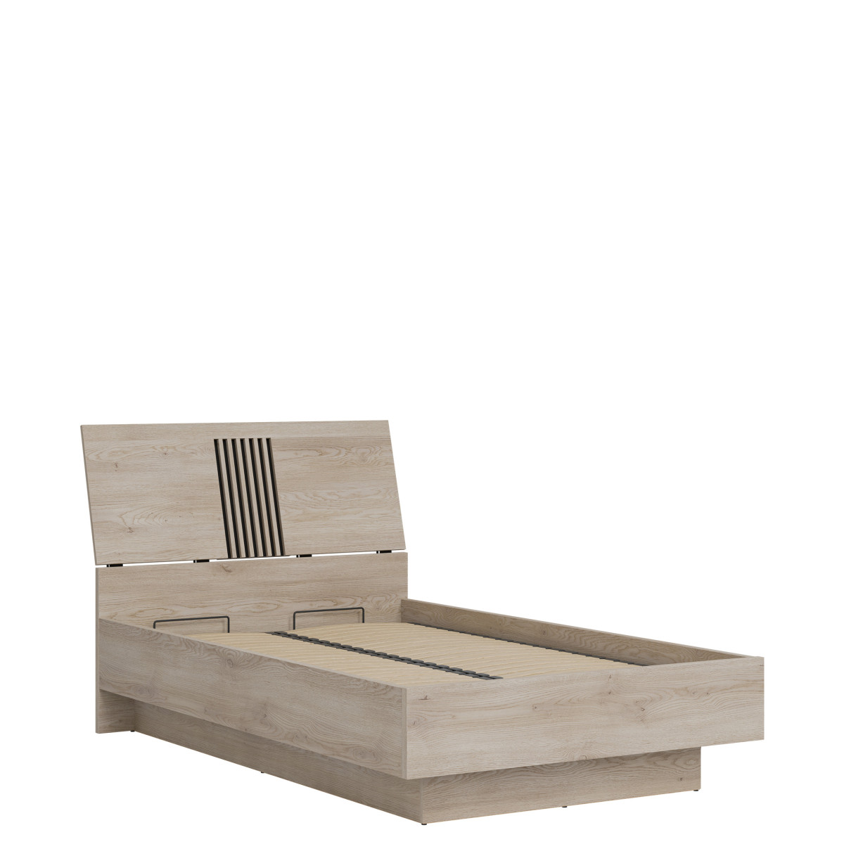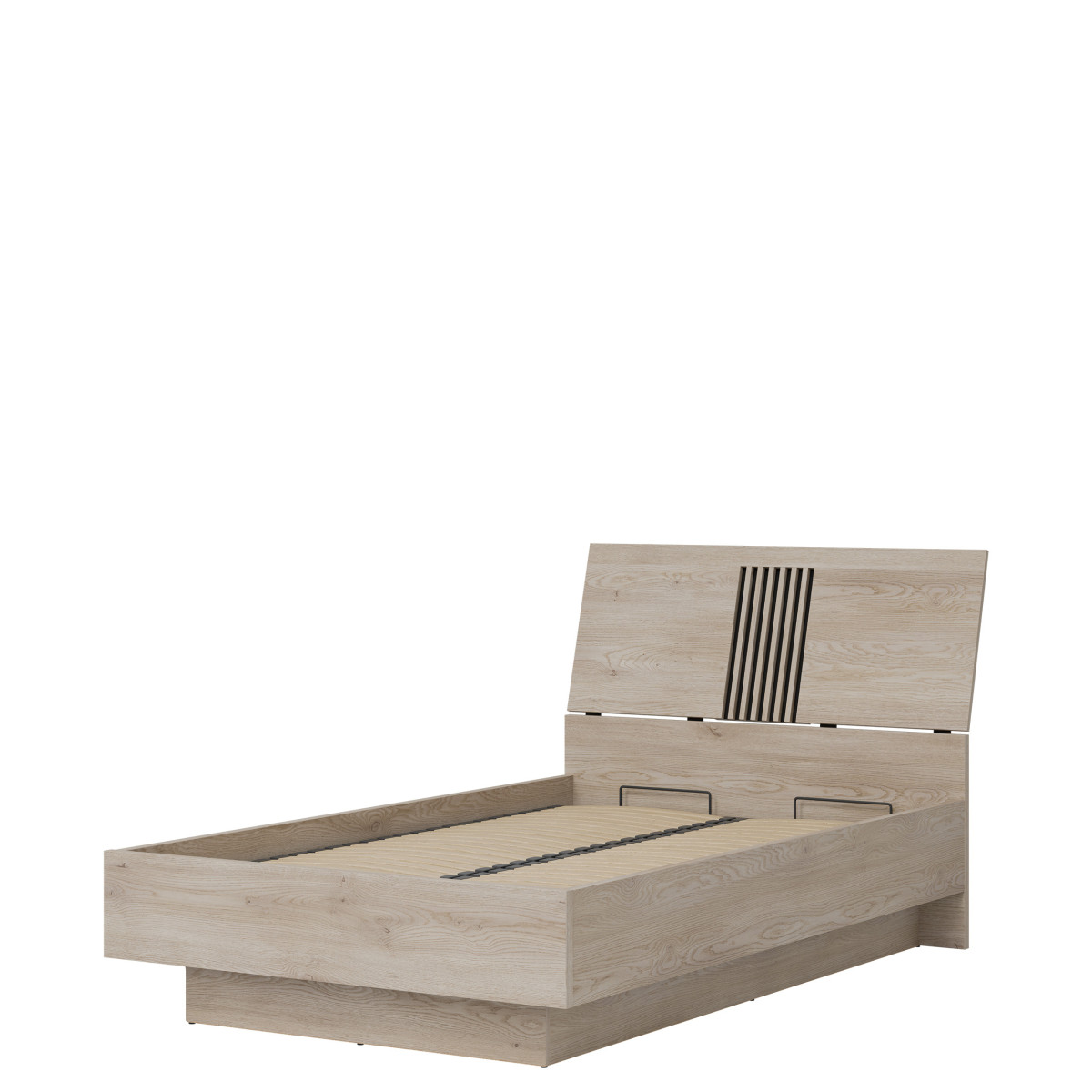 The 120 cm wide Mati MI18 bed with bedding storage is the perfect solution for those who value functionality and modern design. Made of high-quality materials, it guarantees durability and comfort. The stylish Cremona oak color scheme with black accents adds elegance and harmony to the interior. The bed is equipped with a spacious bedding storage compartment, saving space and keeping the bedroom tidy. This model is perfect for a teenager’s room, combining aesthetics with practicality, perfectly complementing modern interiors.