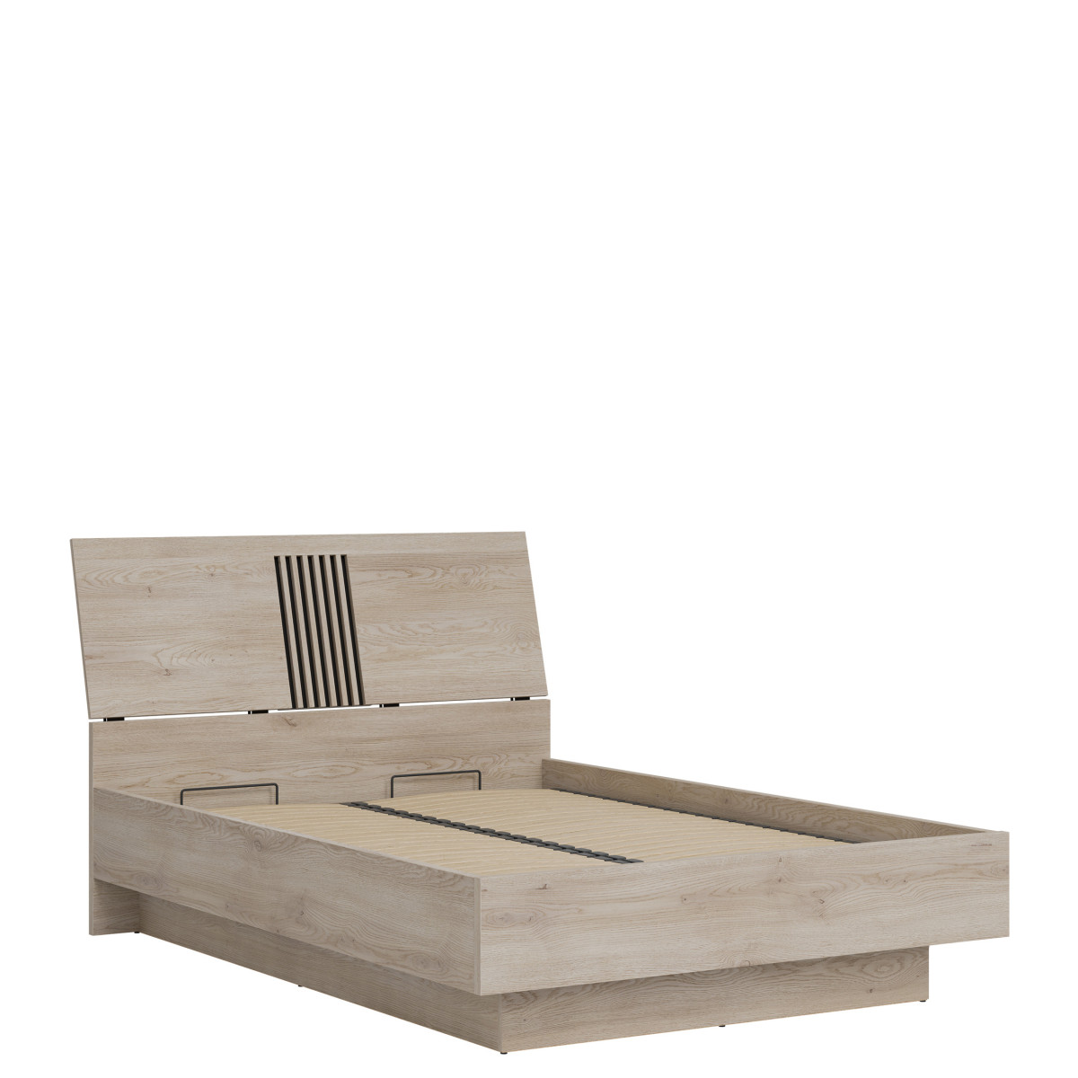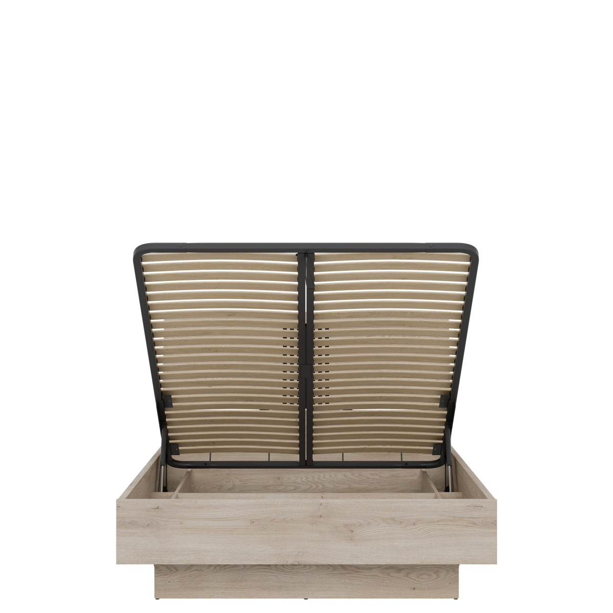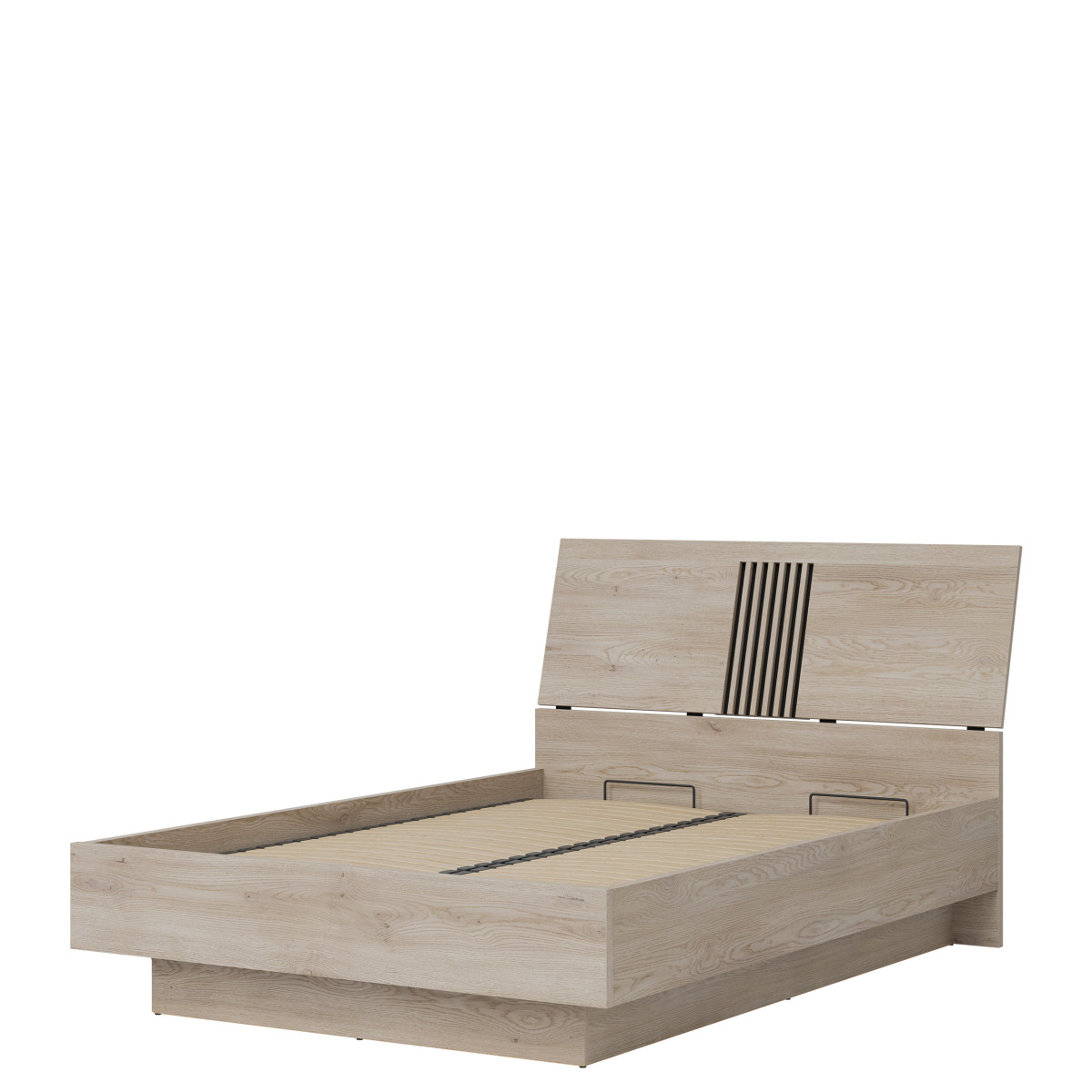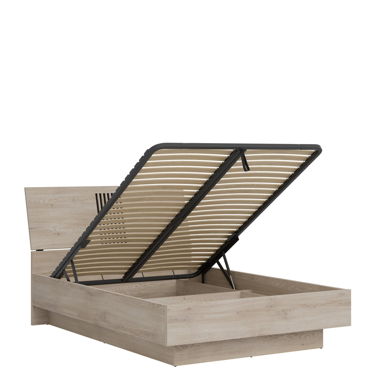 Width 147 cm Length 218 cm Height 108 cm Sleeping area 140 cm x 200 cm Product weight with packaging 111.95 kg Manufacturer’s code / symbol MI18/140S.P. Collection name MATI Name in the b2b system MATI MI18/140 OAK CREM COTTA/CZ BED 140 with SiP KPL Number of product packages 6 Style Modern Equipment Assembly instructions / assembly accessories Assembly For self-assembly Colors Cremona cotta oak / Black Top material / type / thickness 16 mm furniture board / 28 mm furniture board / slats 16 mm MDF furniture board Left and right sides material / type / thickness 28 mm furniture board Bottom material / type / thickness 28 mm furniture board Base material / type / thickness 16 mm furniture board Foot / material / color Non-adjustable / Furniture glider / plastic / Black Frame Standard Frame material Metal frame / wooden slats Frame number of slats 48 Bedding container Standard Internal container type in the bed Number of closed cavities: 2