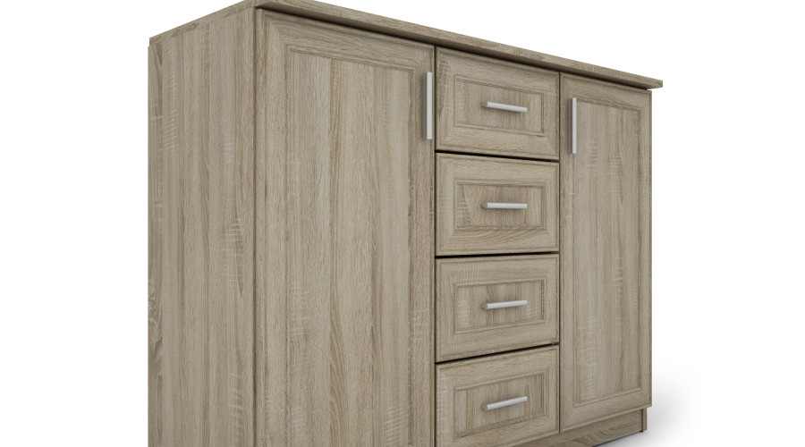 Maža komoda su stalčiais ir spintelėmis, 120 cm, Sonoma Jasna – KINGA