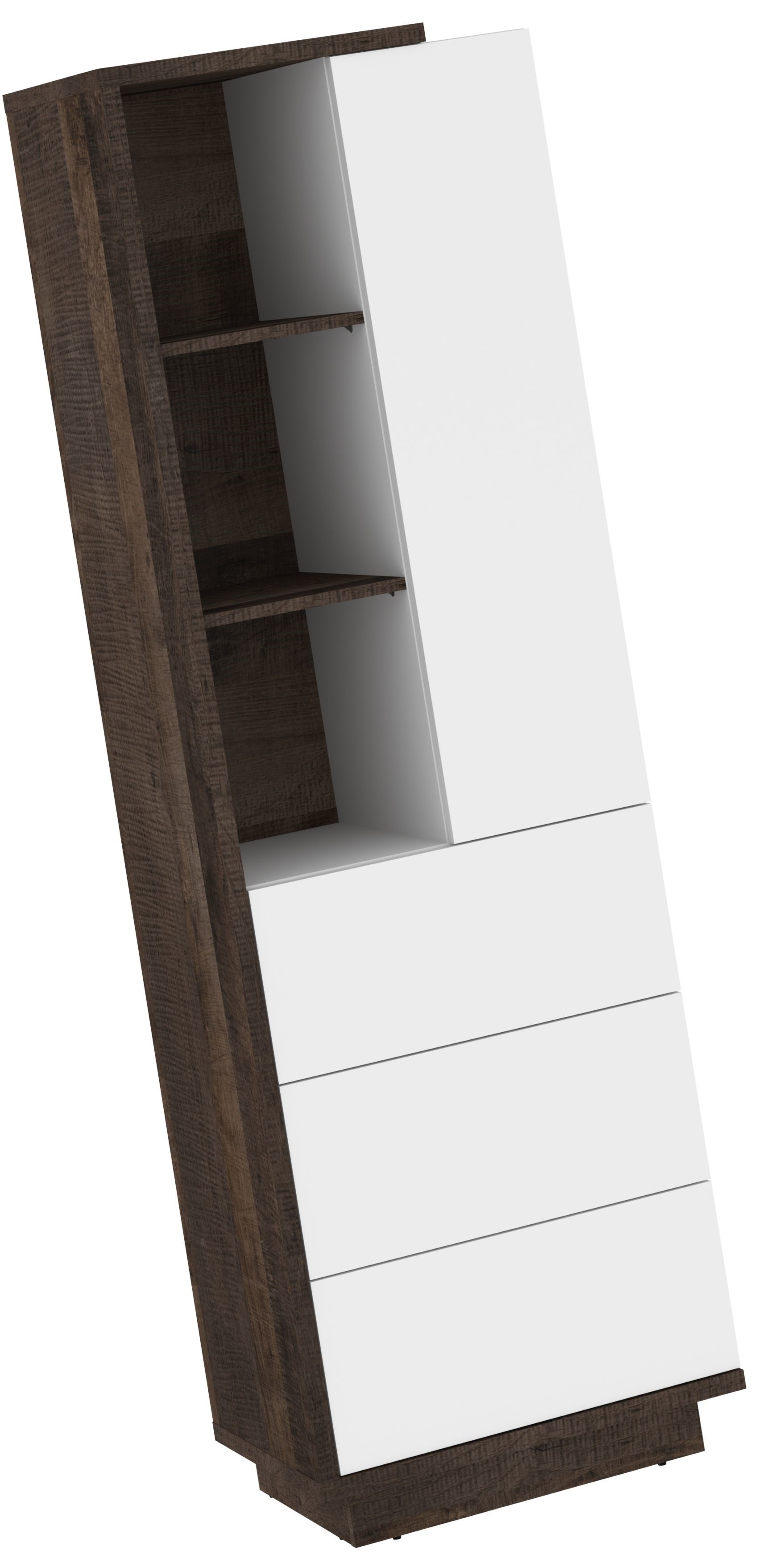 BRITA 19 aukšta baldų lentyna su lentynomis, stalčiumi, durelėmis, ąžuolo spalvos, balta