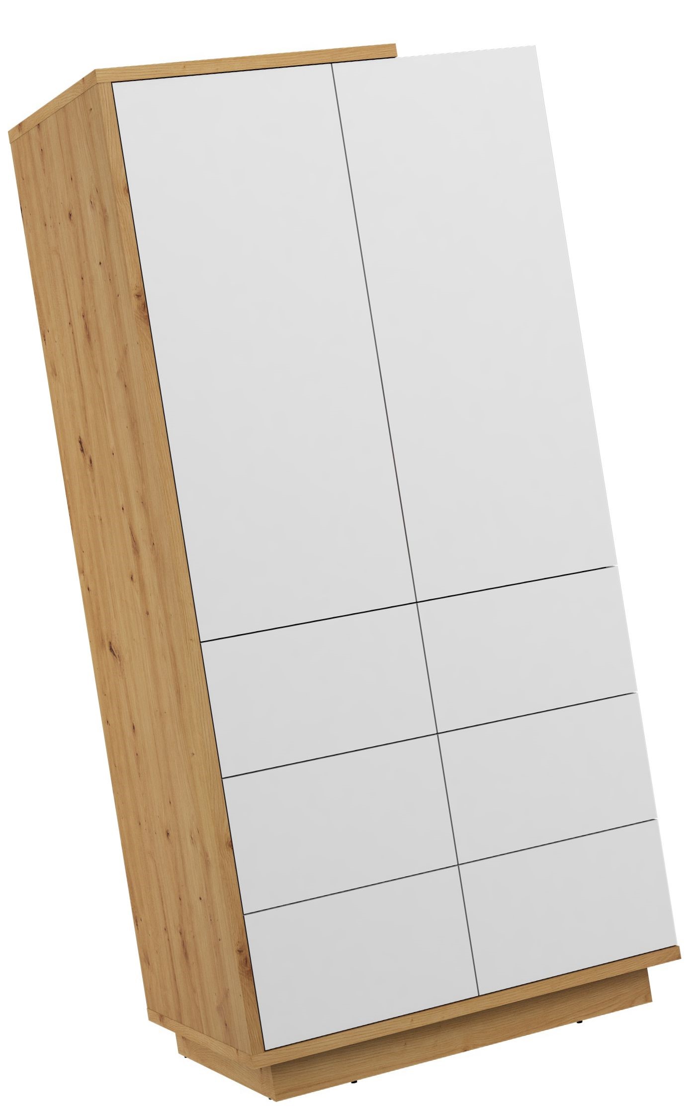 BRITA 23 spinta svetainei, prieškambariui, miegamajam, dirbtinio ąžuolo spalvos, baltai blizgi