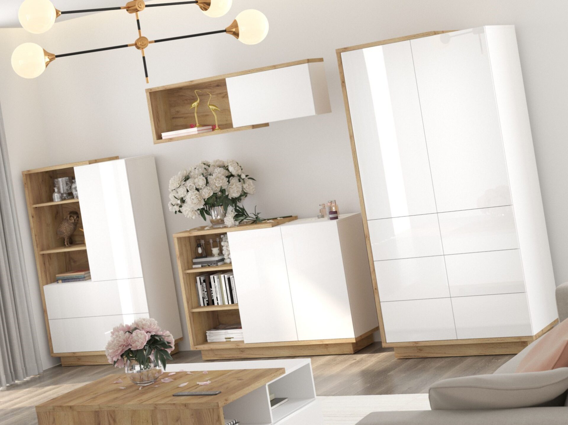 BRITA baldai #4 kambarių knygų lentyna komoda drabužių spinta lentyna ąžuolas aukso balta poliruota