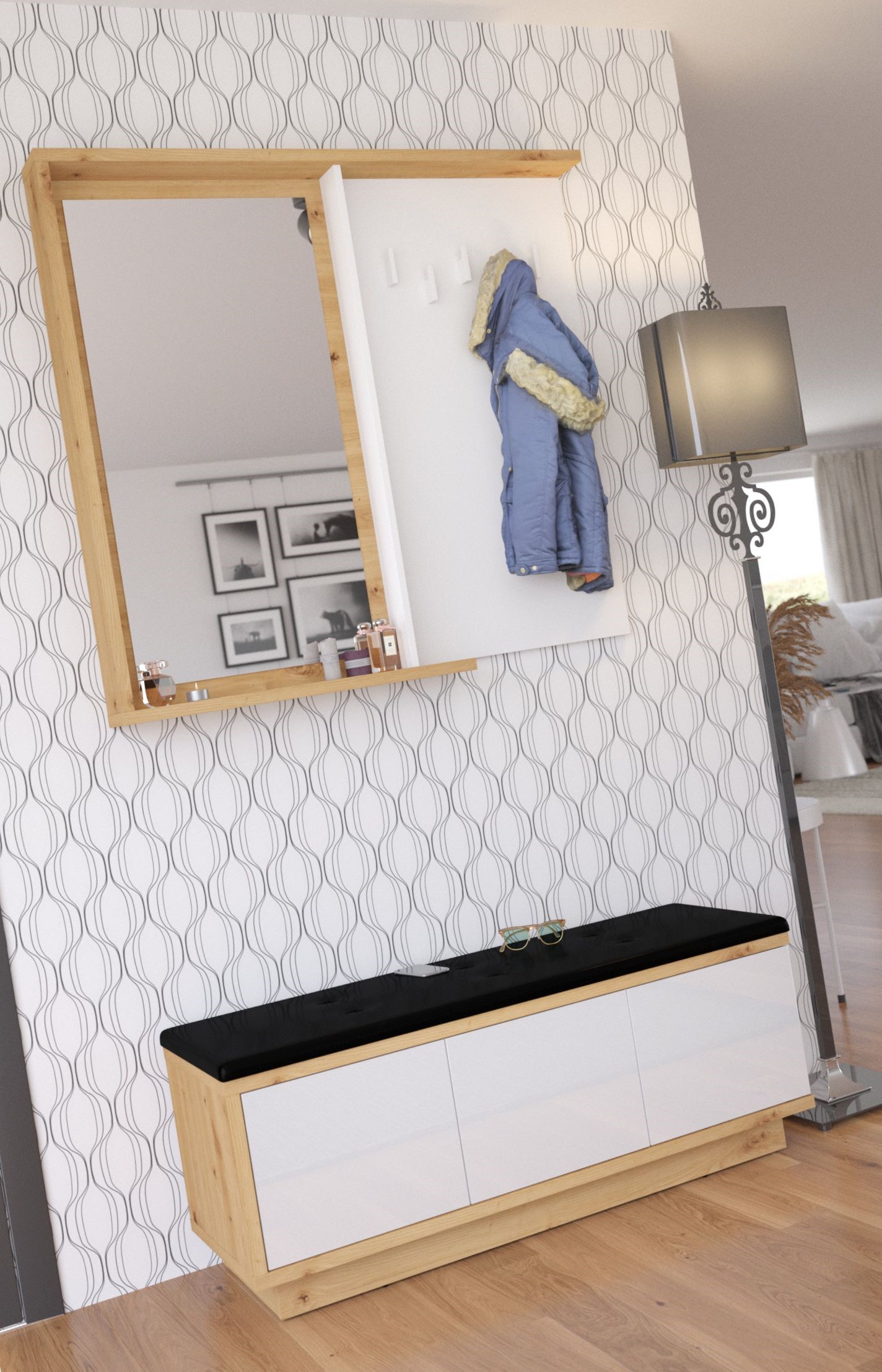 BRITA #5 prieškambario baldai su veidrodžiu, spintelė su sėdyne, ąžuolas „artisan“, balta