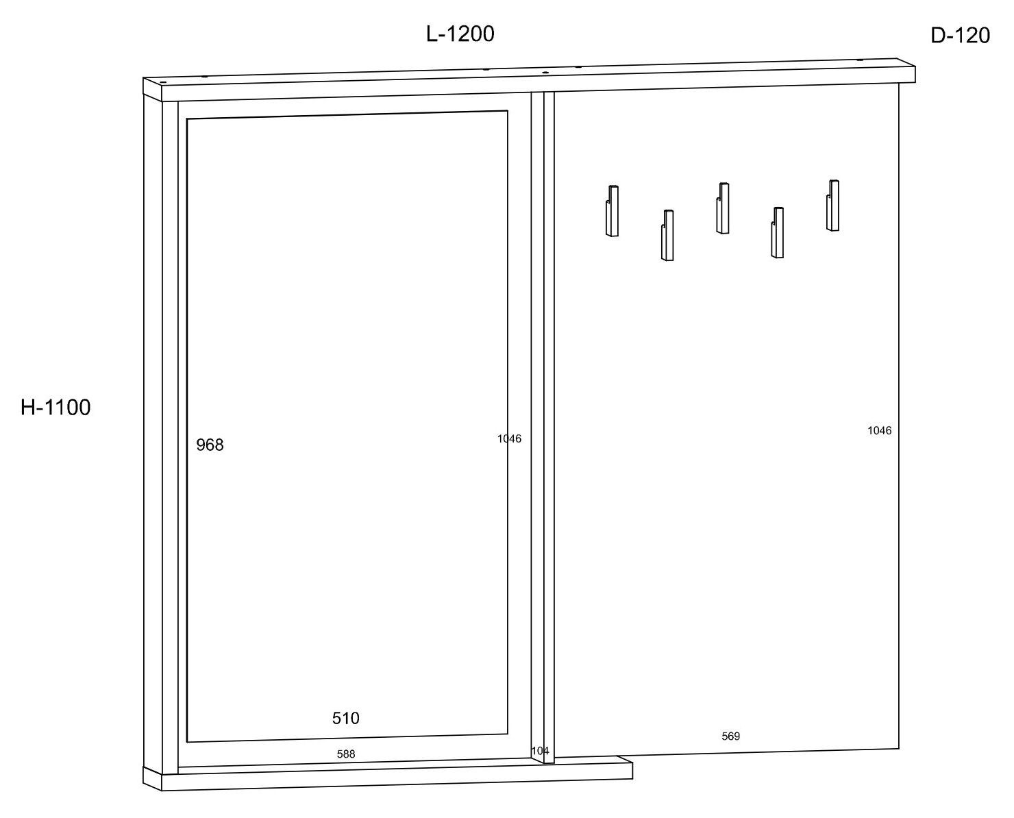 The set includes: BRITA 02 cabinet with seat 120/48/40 – 39 kg – 2 units BRITA 26 coat rack with mirror 120/110/12 – 25 kg – 1 unit