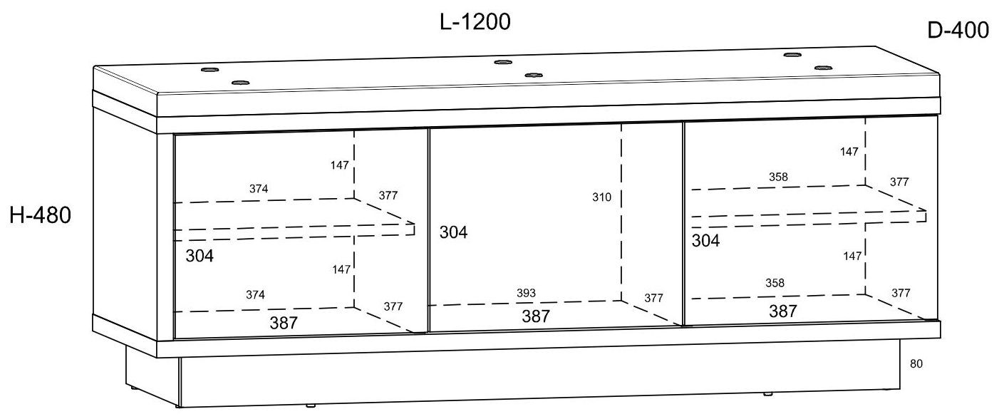 The furniture is made of 16mm and 25mm thick chipboard with ABS edging. The doors have a push-to-open mechanism. The pedestal is 8.5 cm high.