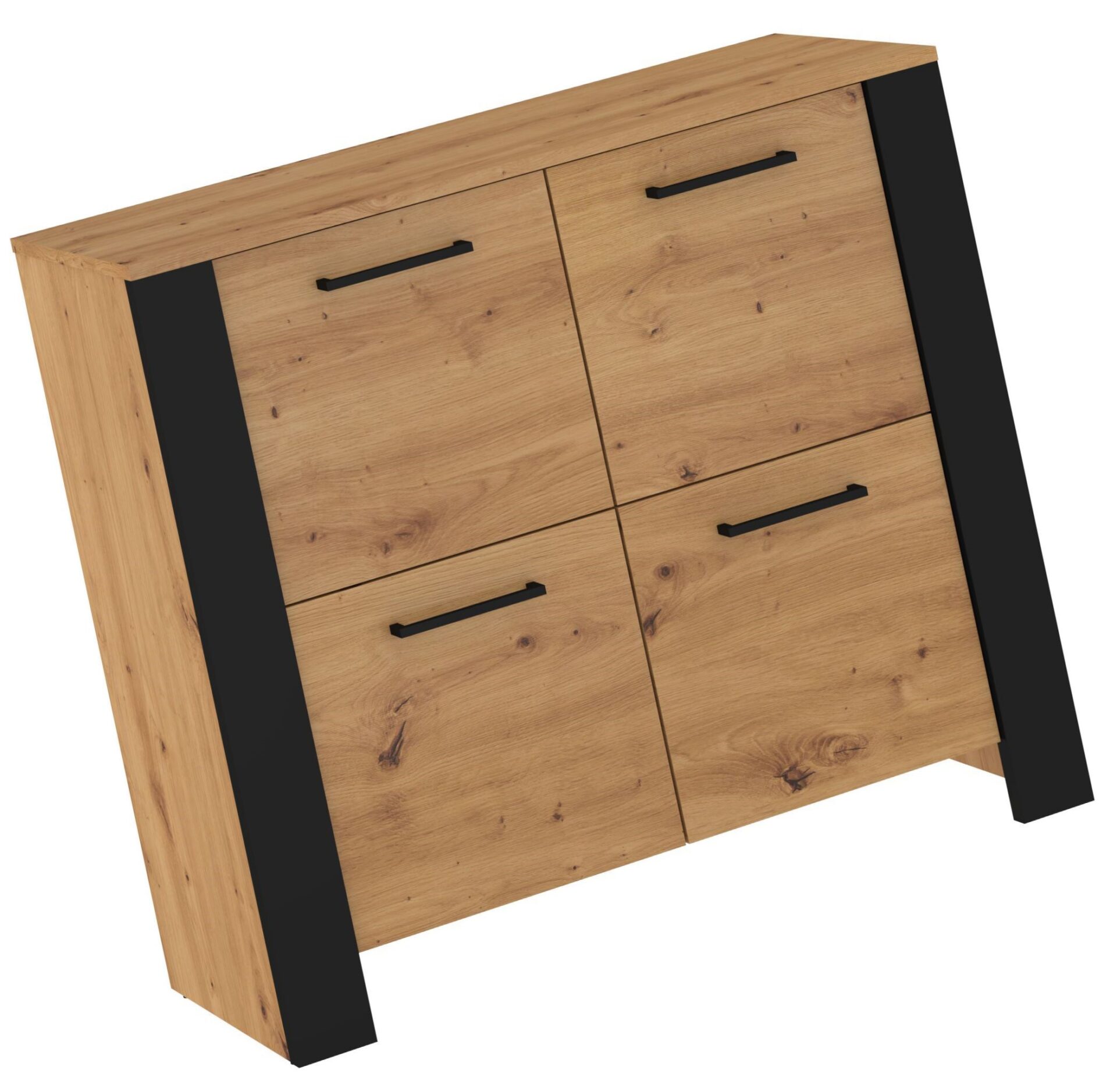 DELIS 04 chest of drawers with doors for the living room. 16 mm and 25 mm board, ABS edge, soft-close. Color: artisan oak / black.