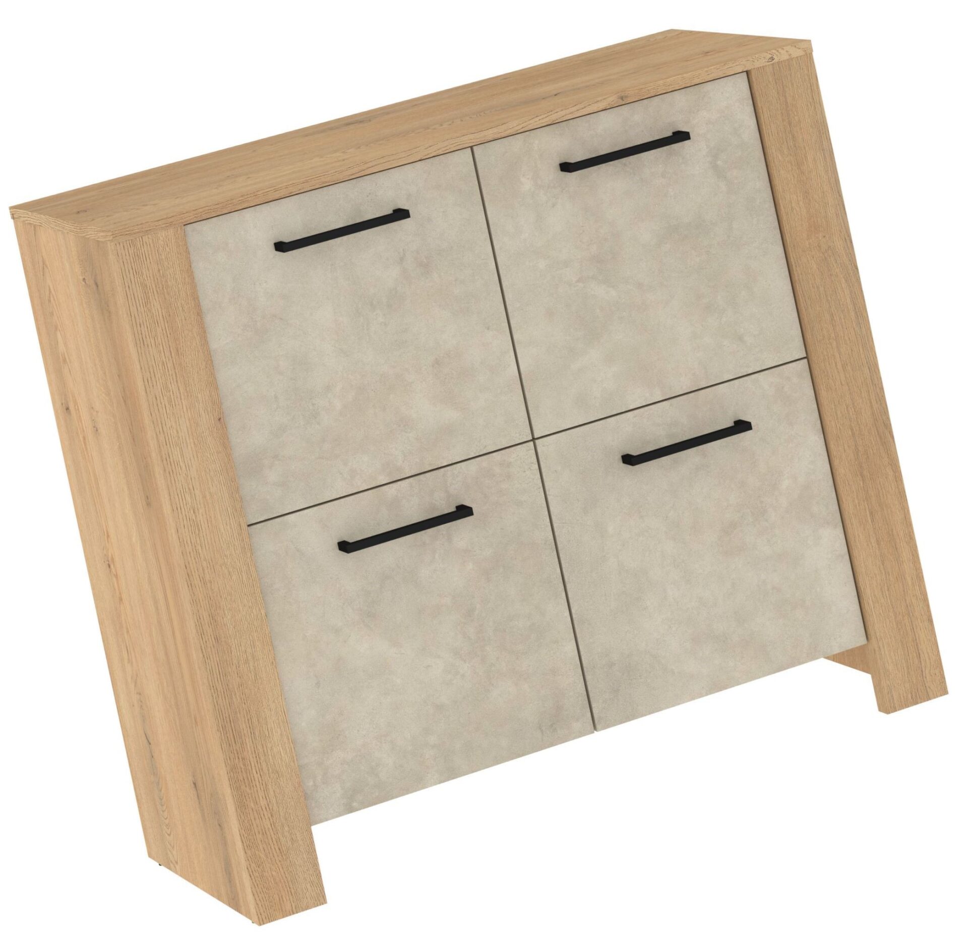 DELIS 04 chest of drawers with doors for the living room. 16 mm and 25 mm board, ABS edge, soft closing. Colors: cremona oak / granada almond.