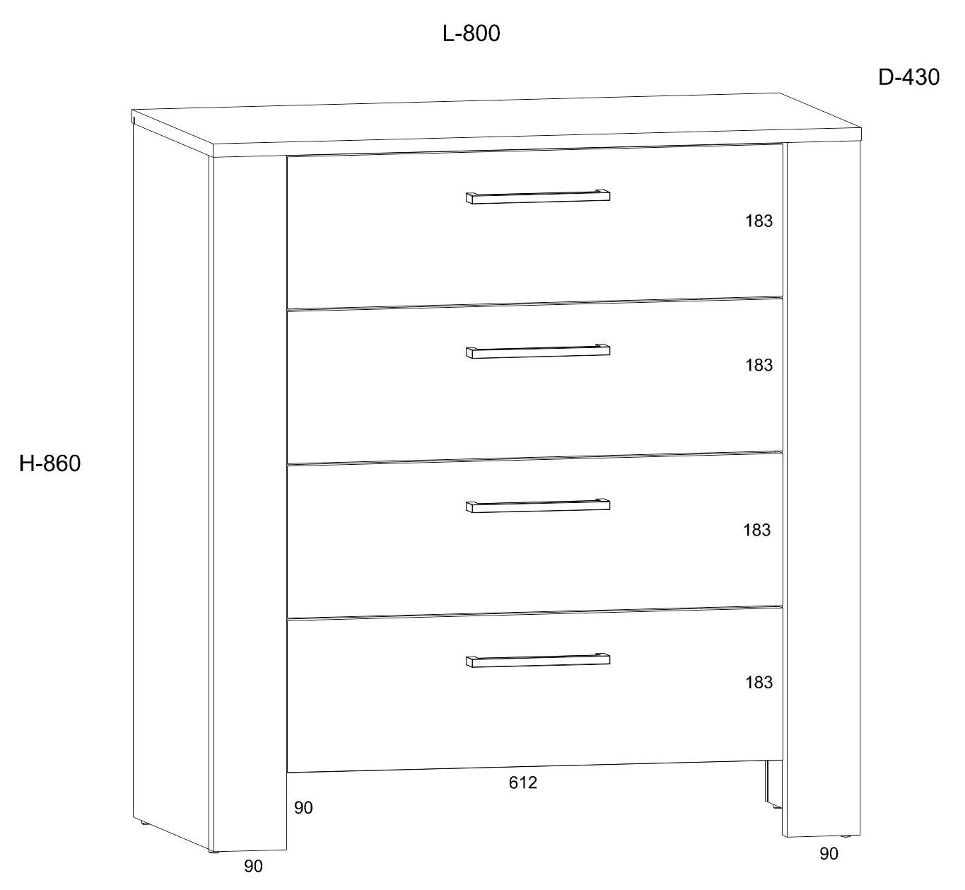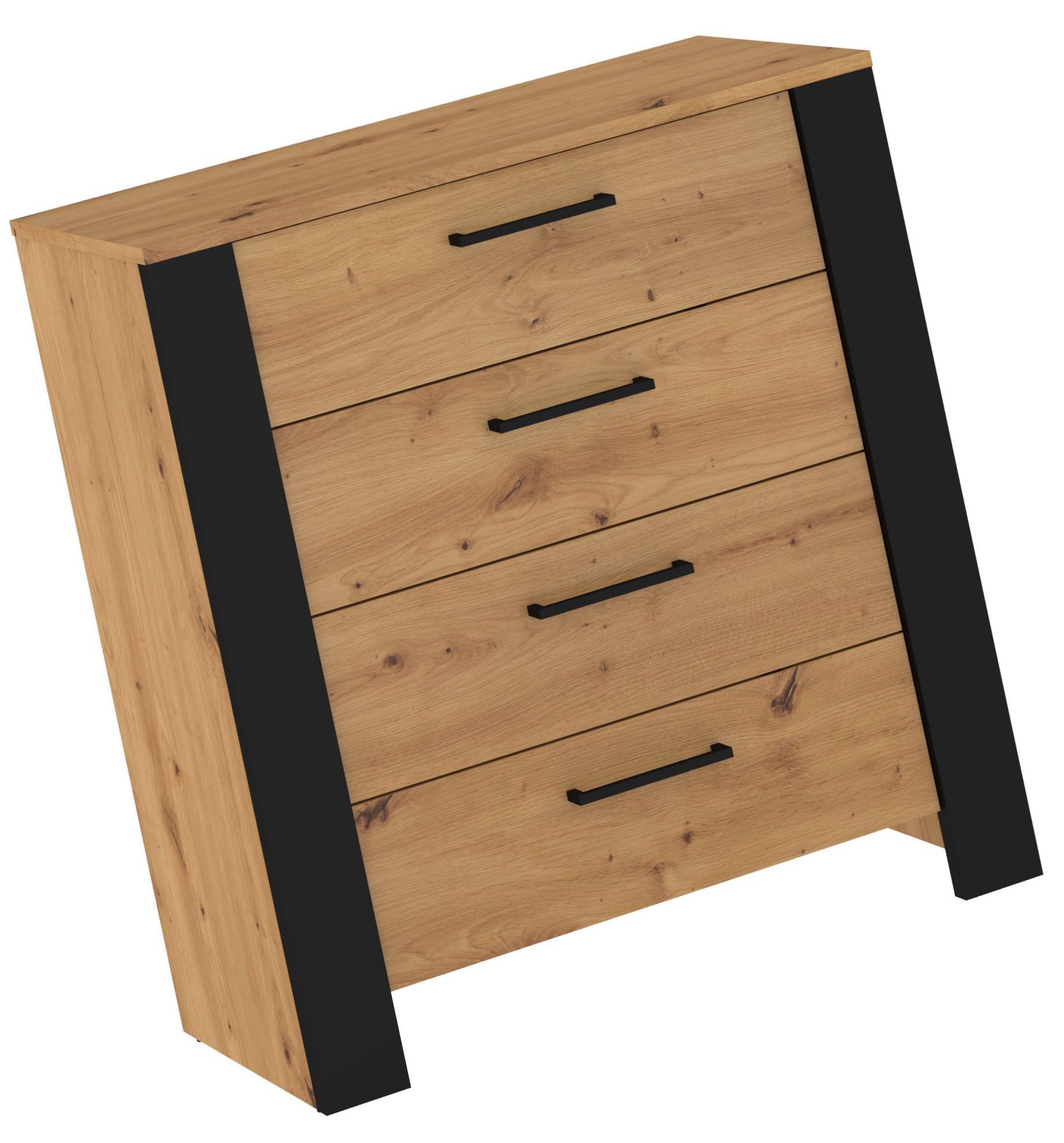 DELIS 05 chest of drawers for living room and bedroom. 16 mm and 25 mm board, ABS edge, soft-close, FULL OPEN guides. Color: Artisan oak / black.