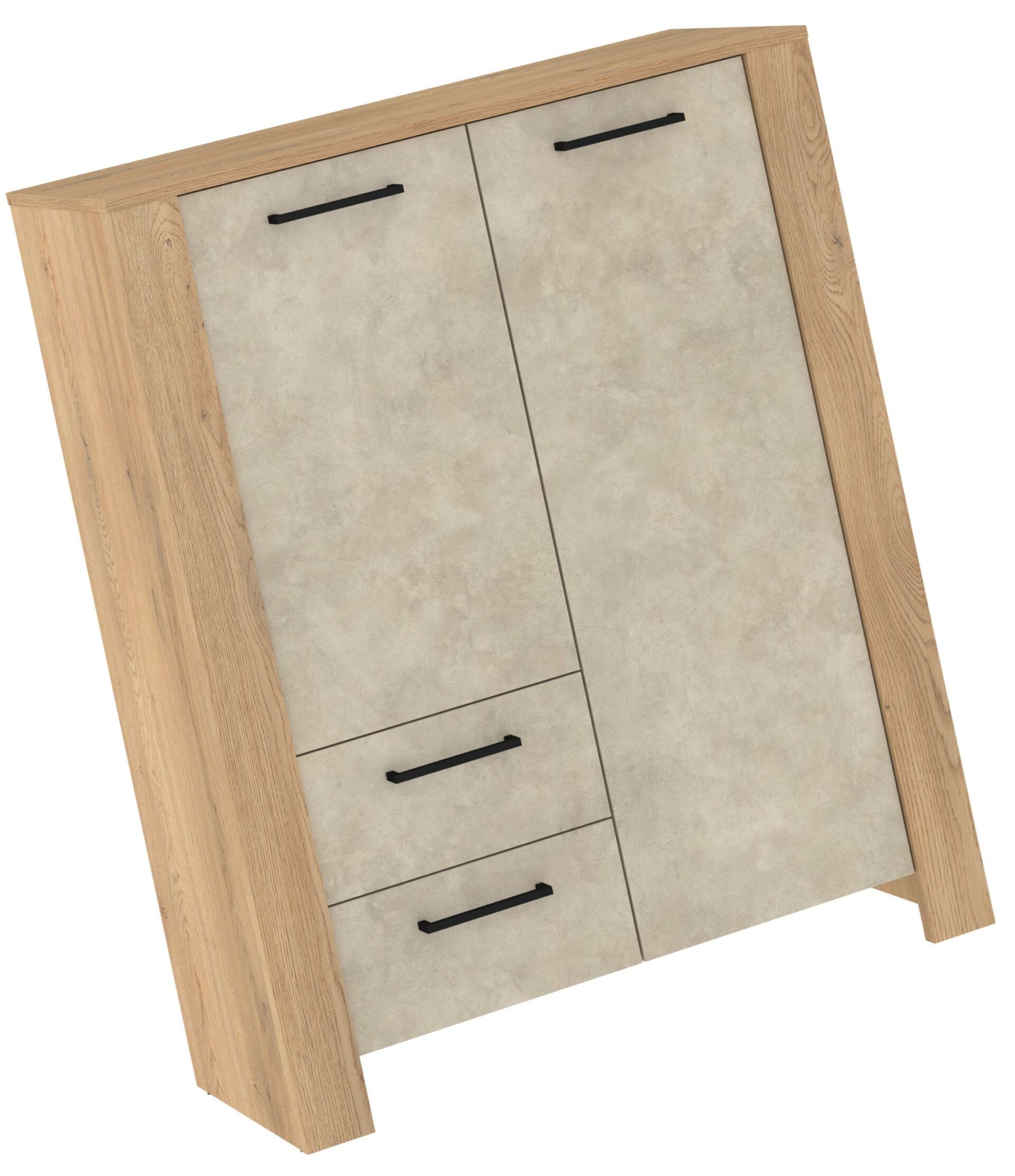 DELIS 08 baldų knygų lentyna su durelėmis ir stalčiais svetainei, ąžuolas „Cremona“, granada mi