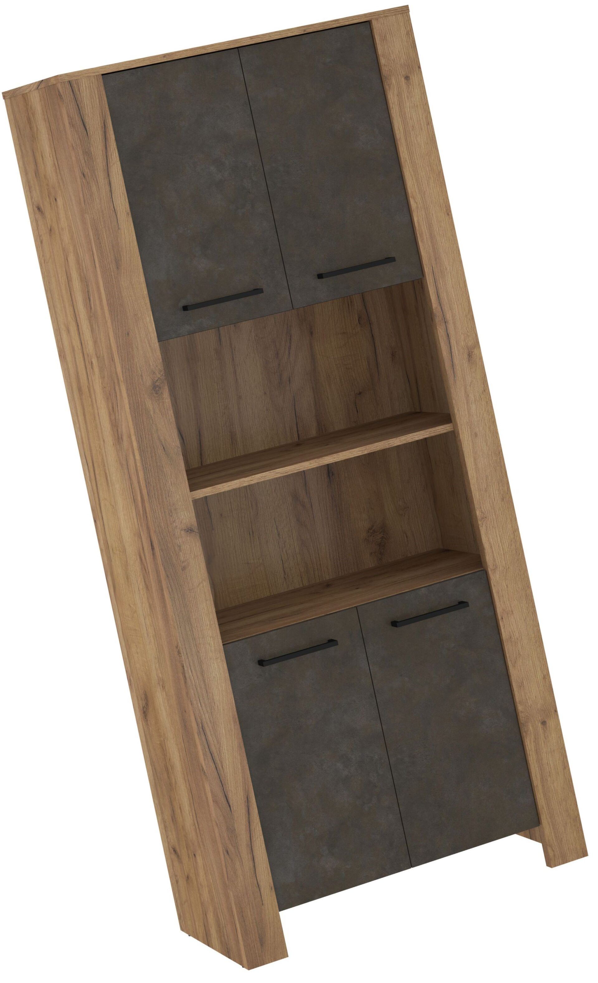 DELIS 09 tall bookcase with doors and shelves for the living room. 16 mm and 25 mm board, ABS edge, soft closing. Color: gold craft oak / granada brown.