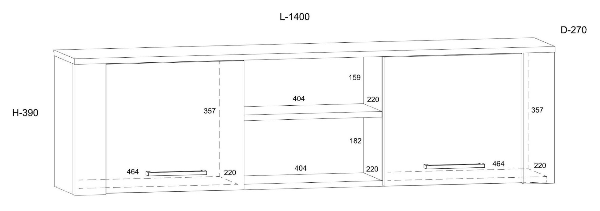 DELIS 13 hanging shelf cabinet with doors. 16 mm and 25 mm board, ABS edge, soft-close. Color: Grange Oak / Graphite.