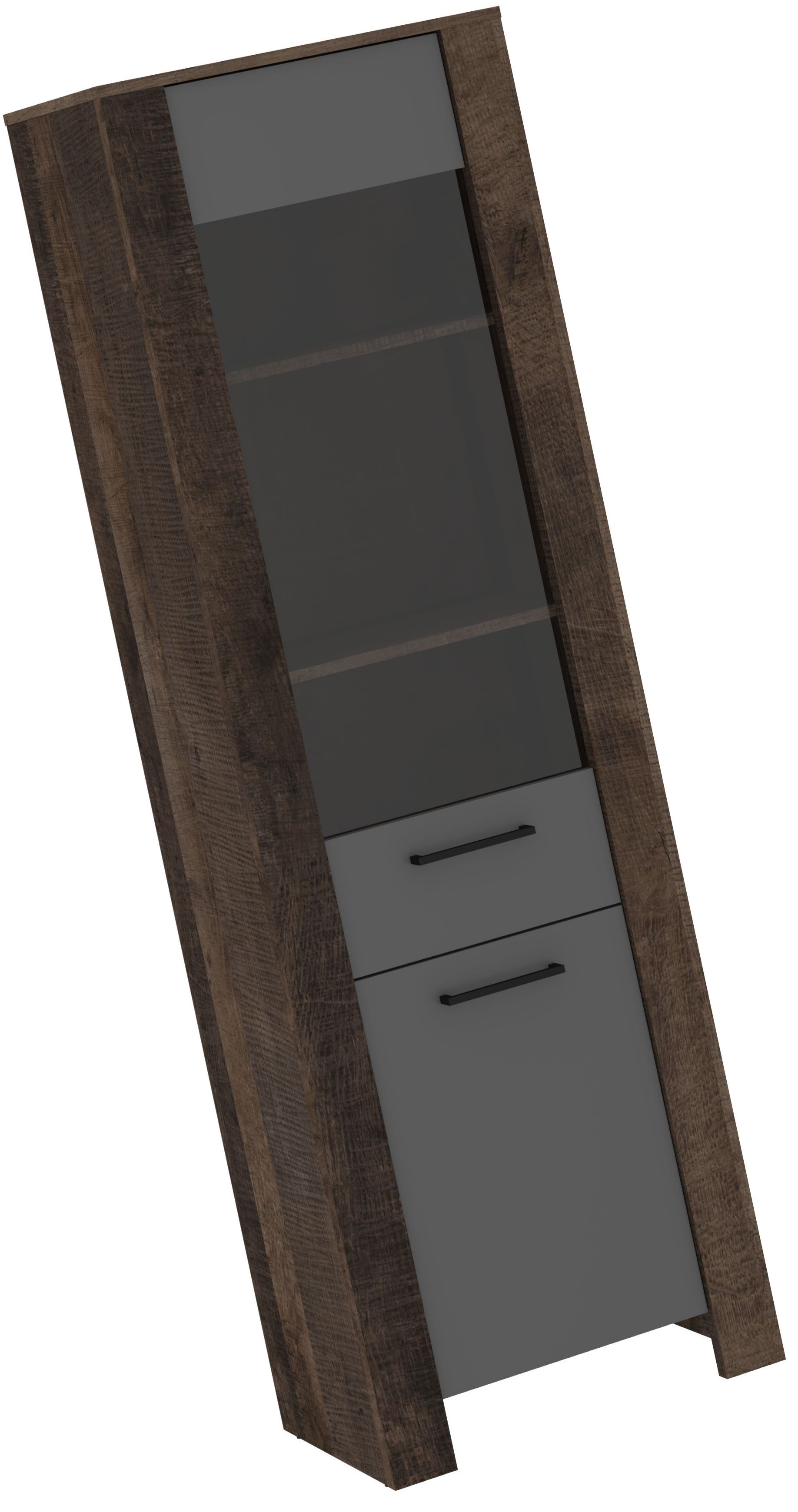 DELIS 15 baldai, aukšta, siaura vitrina svetainei, Grange ąžuolas, grafitas