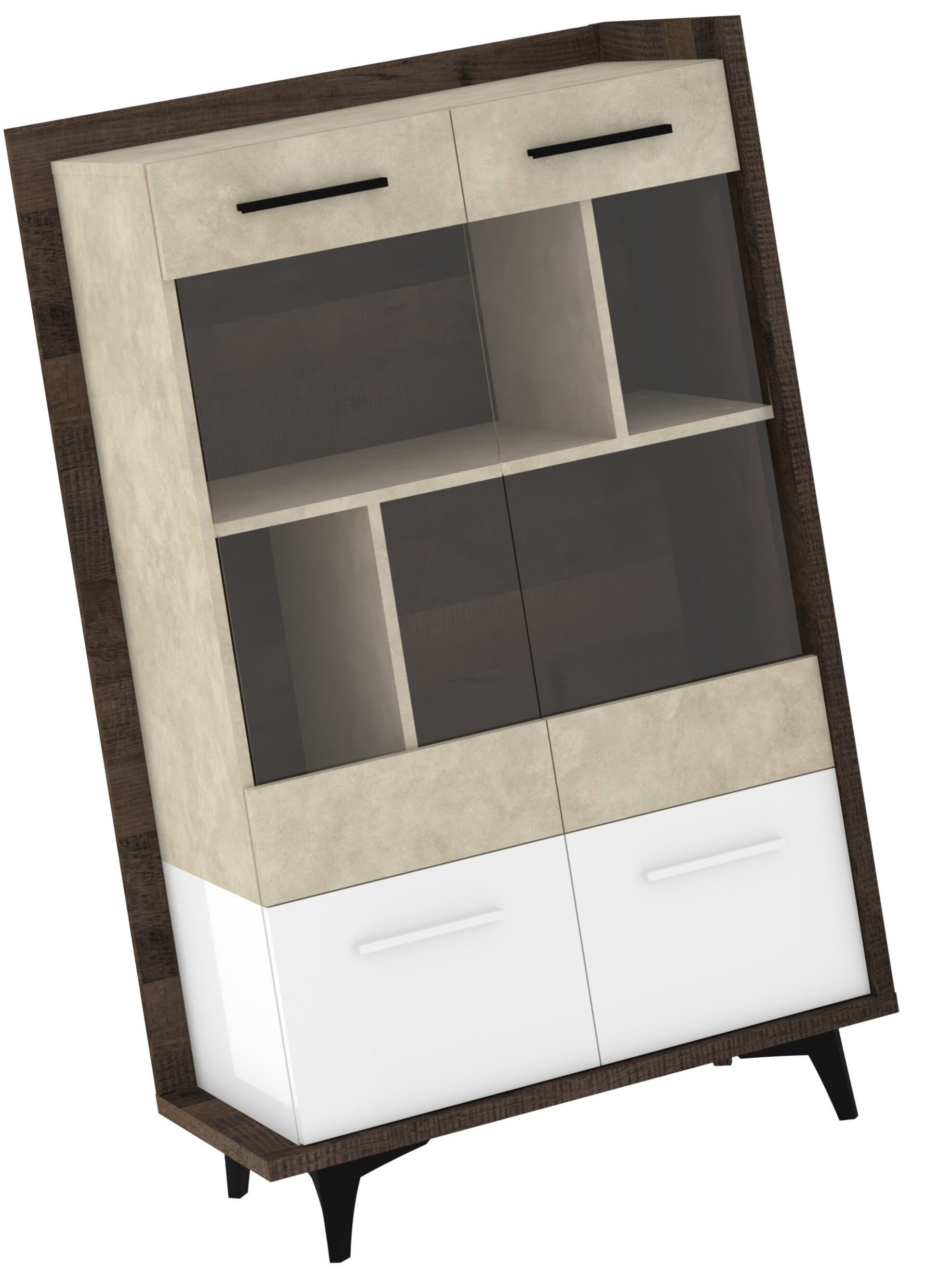 DOX 12 baldai, žema vitrina svetainei su durelėmis, ąžuolo spalvos, balta, granada mi