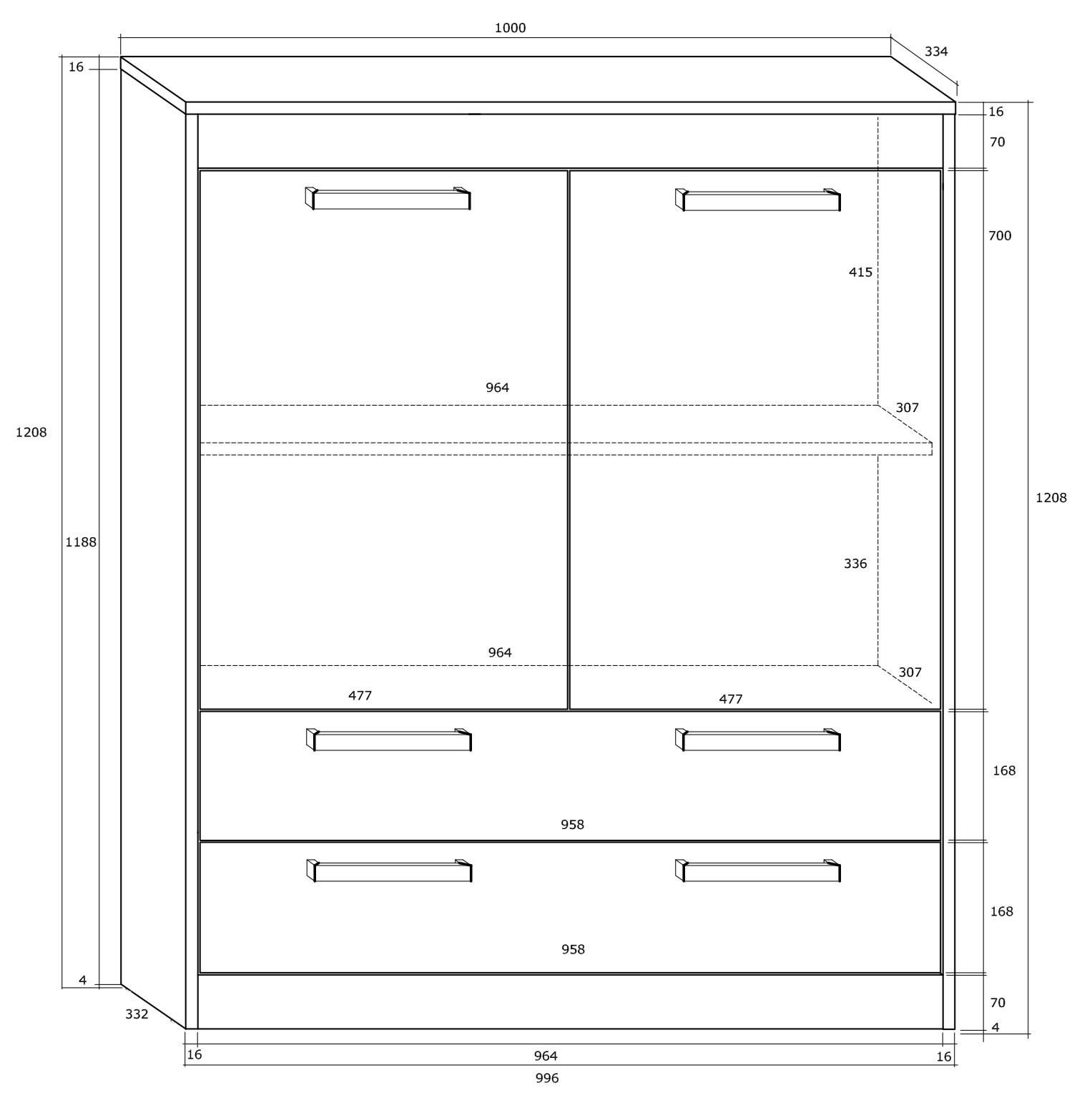 The furniture is constructed of 16mm and 25mm thick chipboard with ABS edging. The drawers and doors feature a soft-close system.
