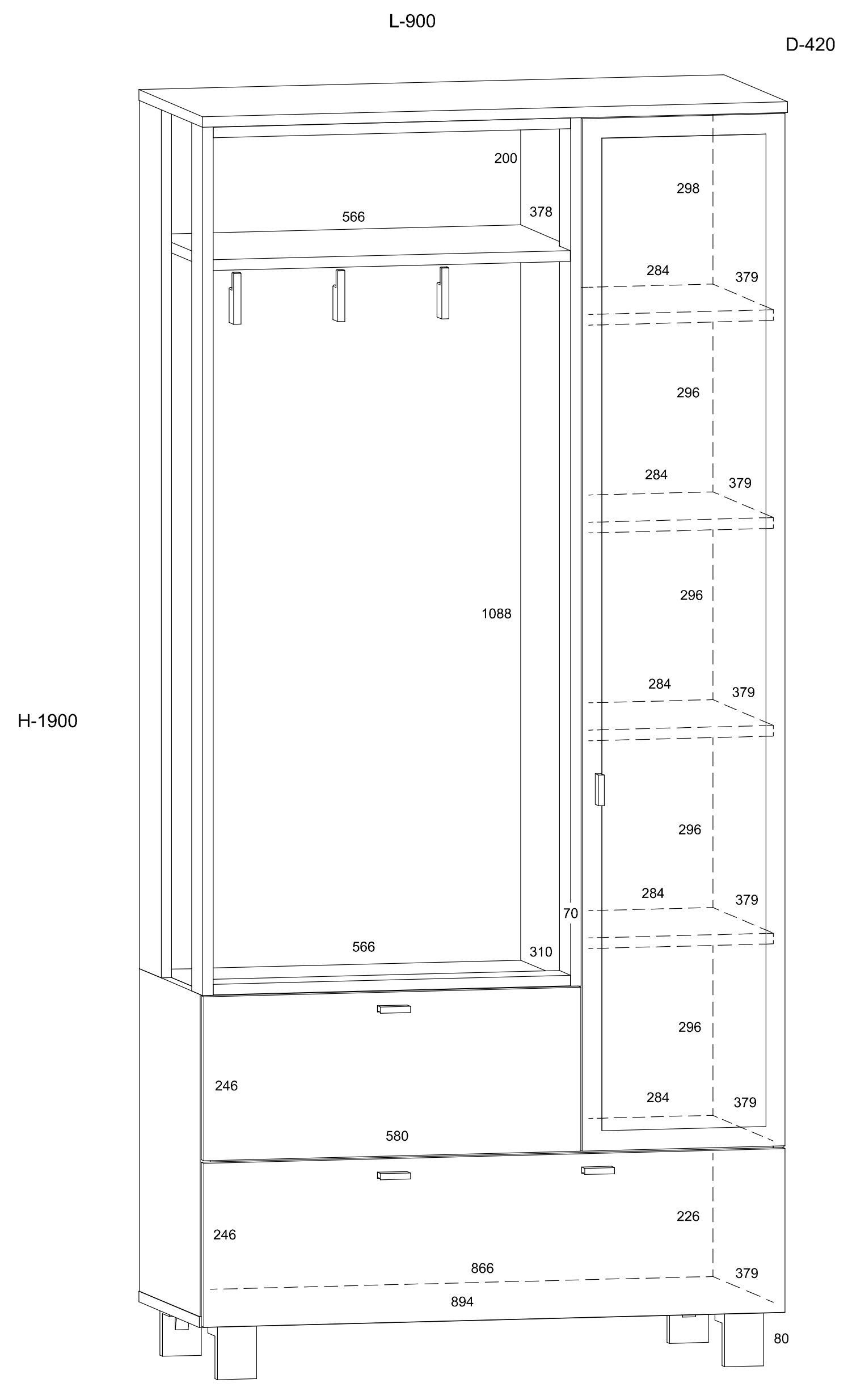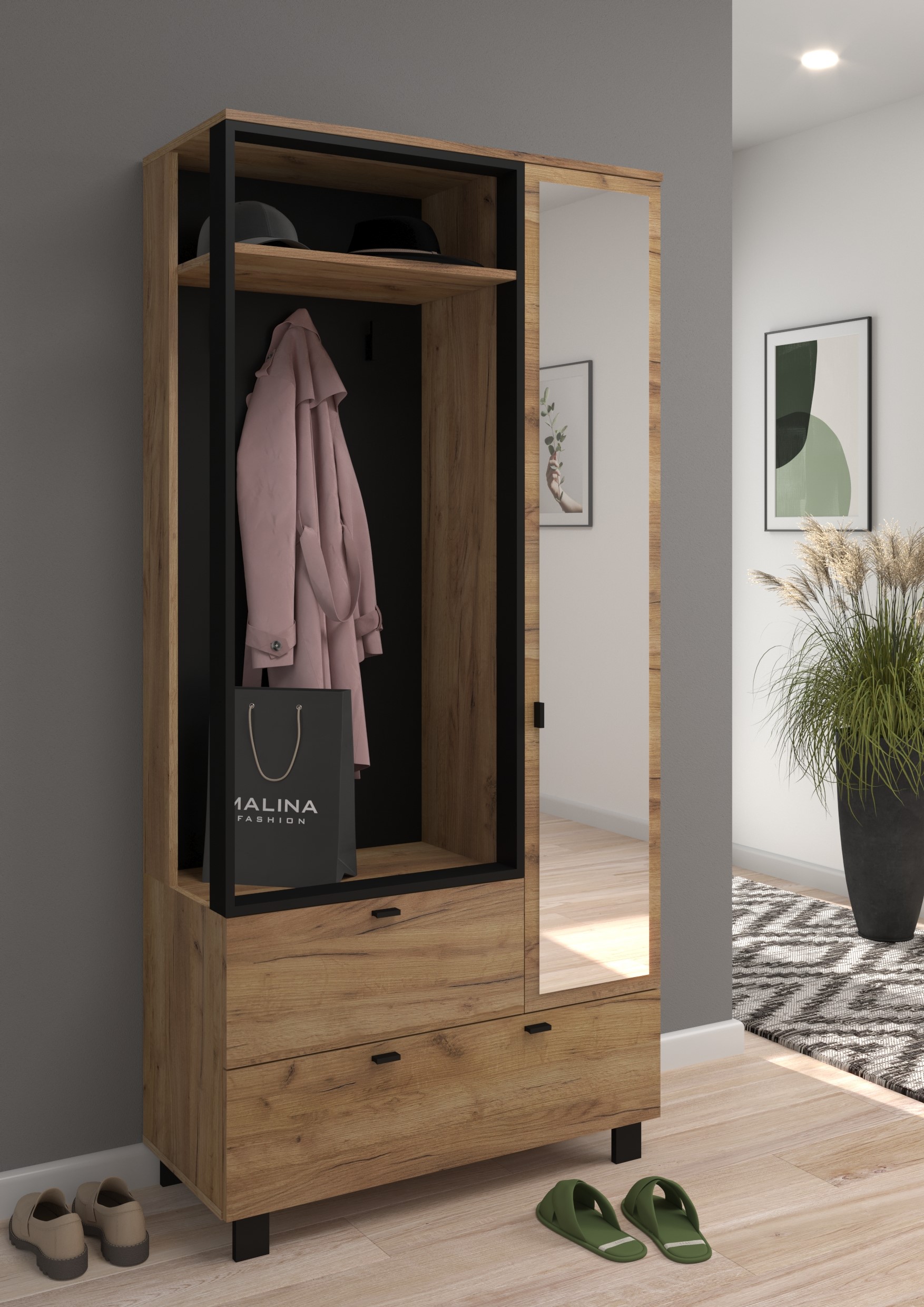 Width [cm]: 90 Height [cm]: 190 Depth [cm]: 42 Weight [kg]: 68 Colors: black, gold craft oak