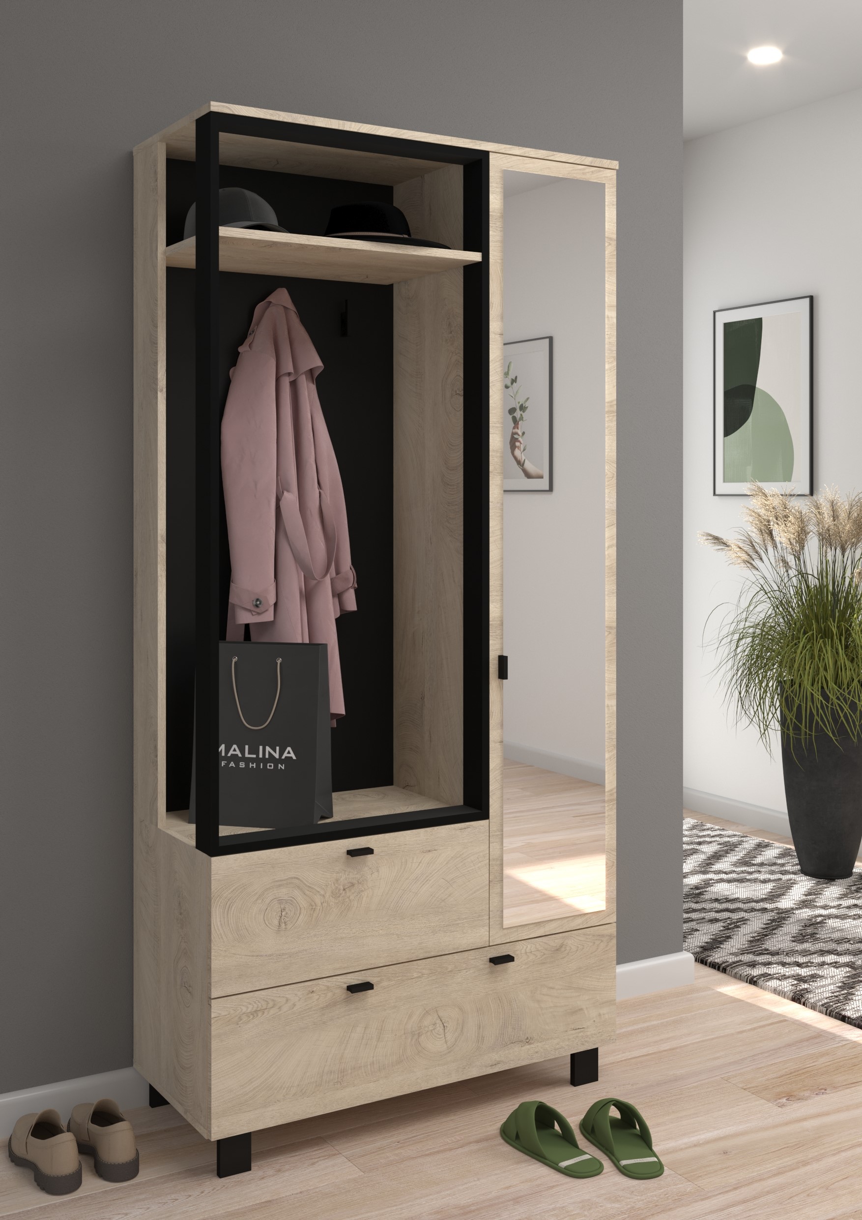 GAVES 05 hallway 2d1s Color: endgrain oak/black