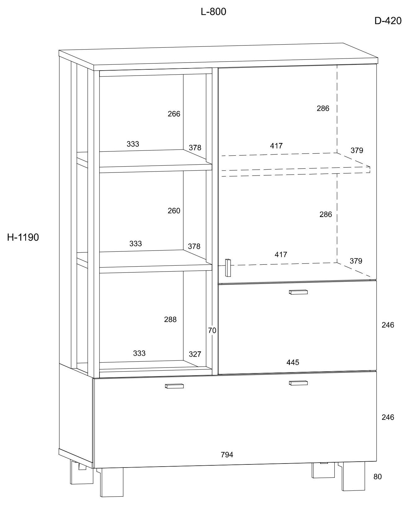 Width [cm]: 80 Height [cm]: 119 Depth [cm]: 42 Weight [kg]: 46 Colors: black, artisan oak