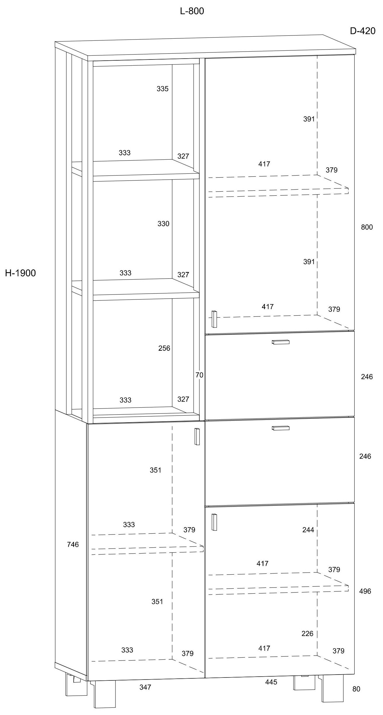 Width [cm]: 80 Height [cm]: 190 Depth [cm]: 42 Weight [kg]: 62 Colors: endgrain oak, white