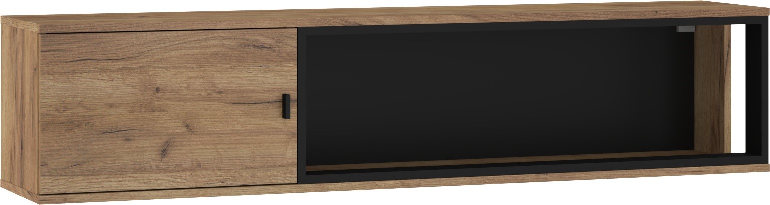 GAVES 16 baldai, sieninė lentyna, palėpės spintelė, ąžuolo spalvos, auksinė, juoda