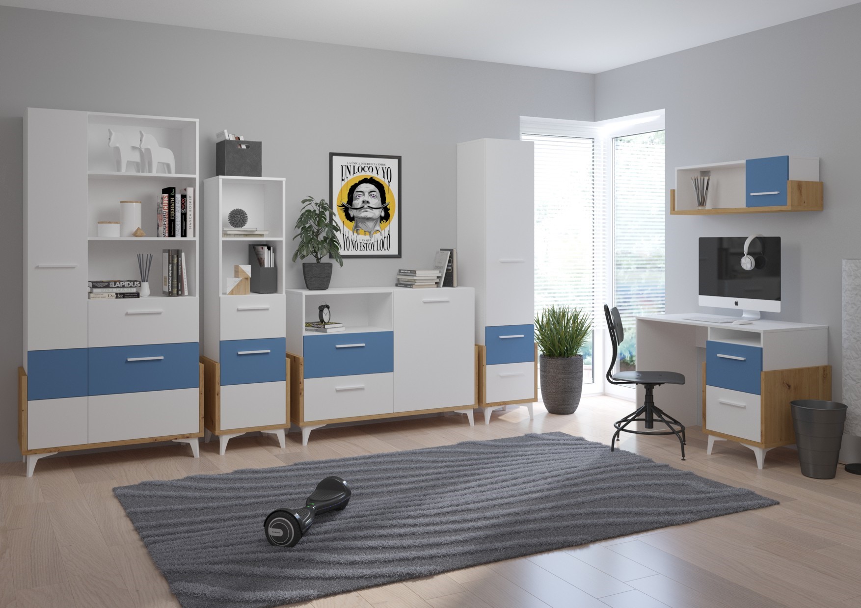 3. Artisan Oak / White / Blue